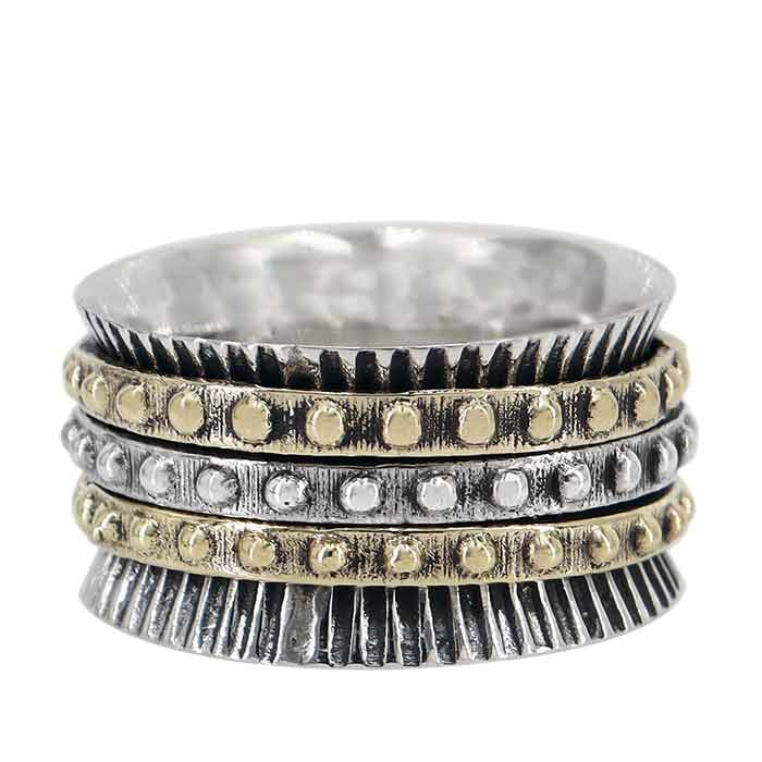 Sterling Silver with brass band, 2 tone meditation ring, 12mm width