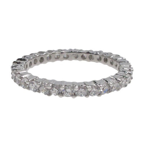 Rhodium-Plated Sterling Silver Eternity Ring with Faceted Round CZ Stones