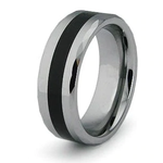 Clean and simple is the best way to describe this wide epoxy black-lined tungsten ring with a diamond-cut faceted edging. This ring is 8mm wide and has a comfort-fit inner radius for a more comfortable fit.