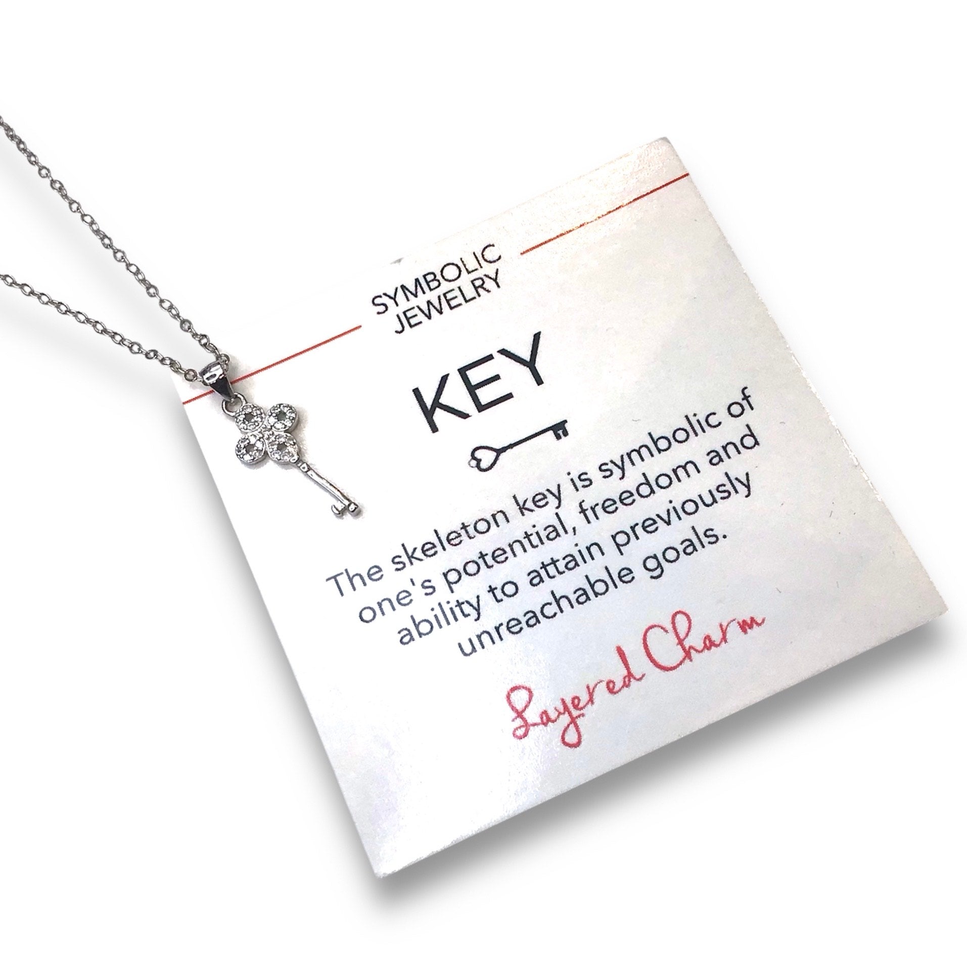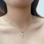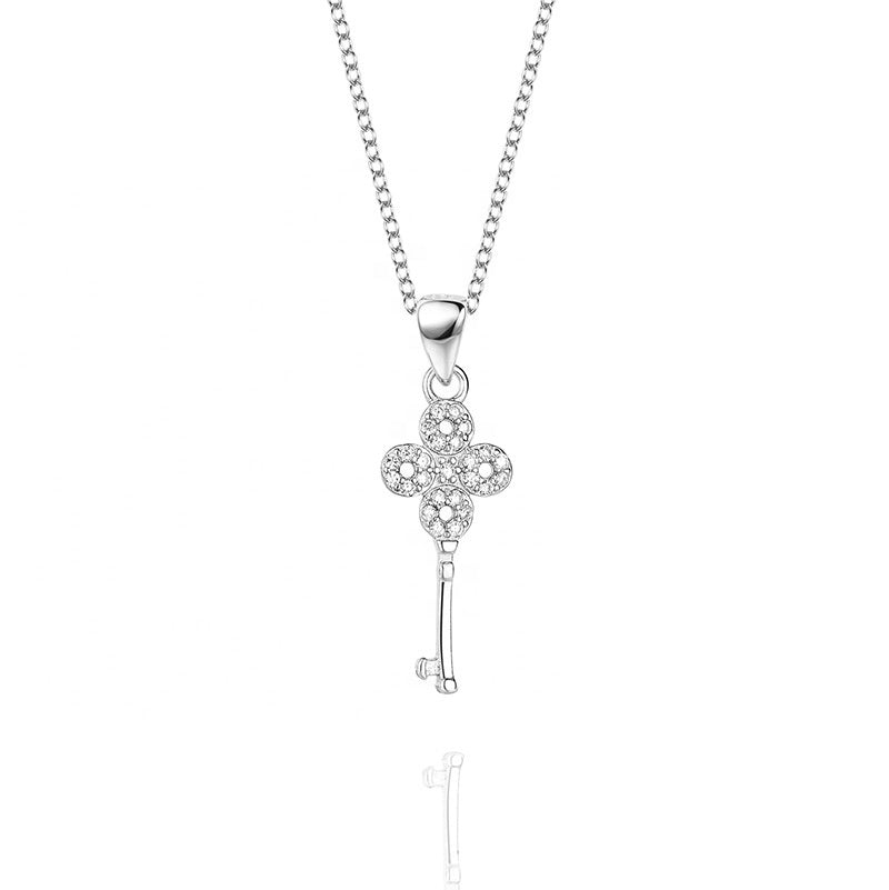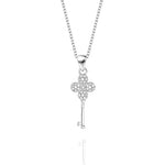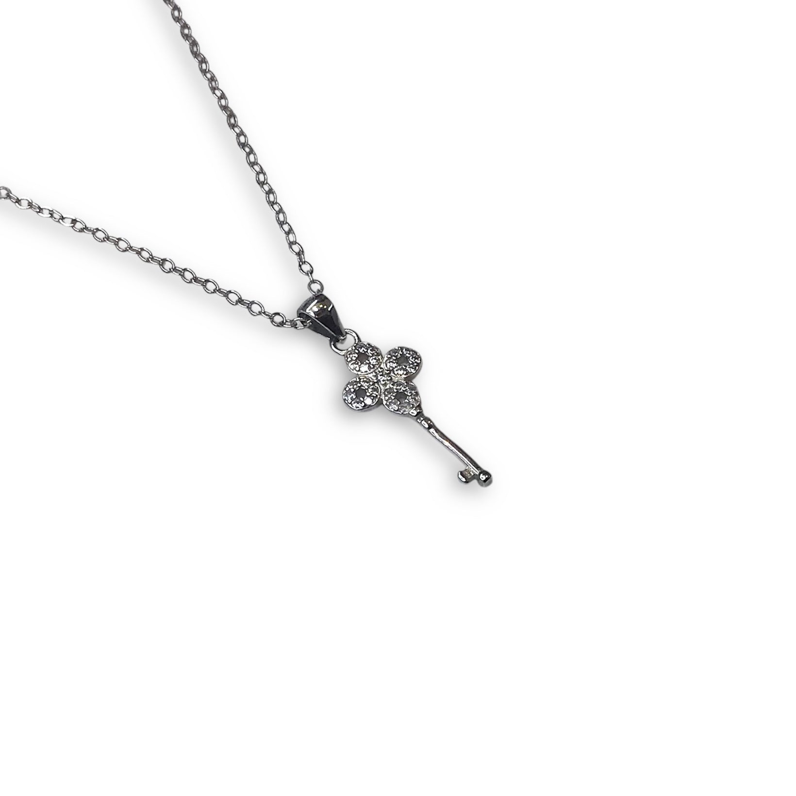 Gorgeous CZ clover top of key pendant paired with a sterling silver chain.