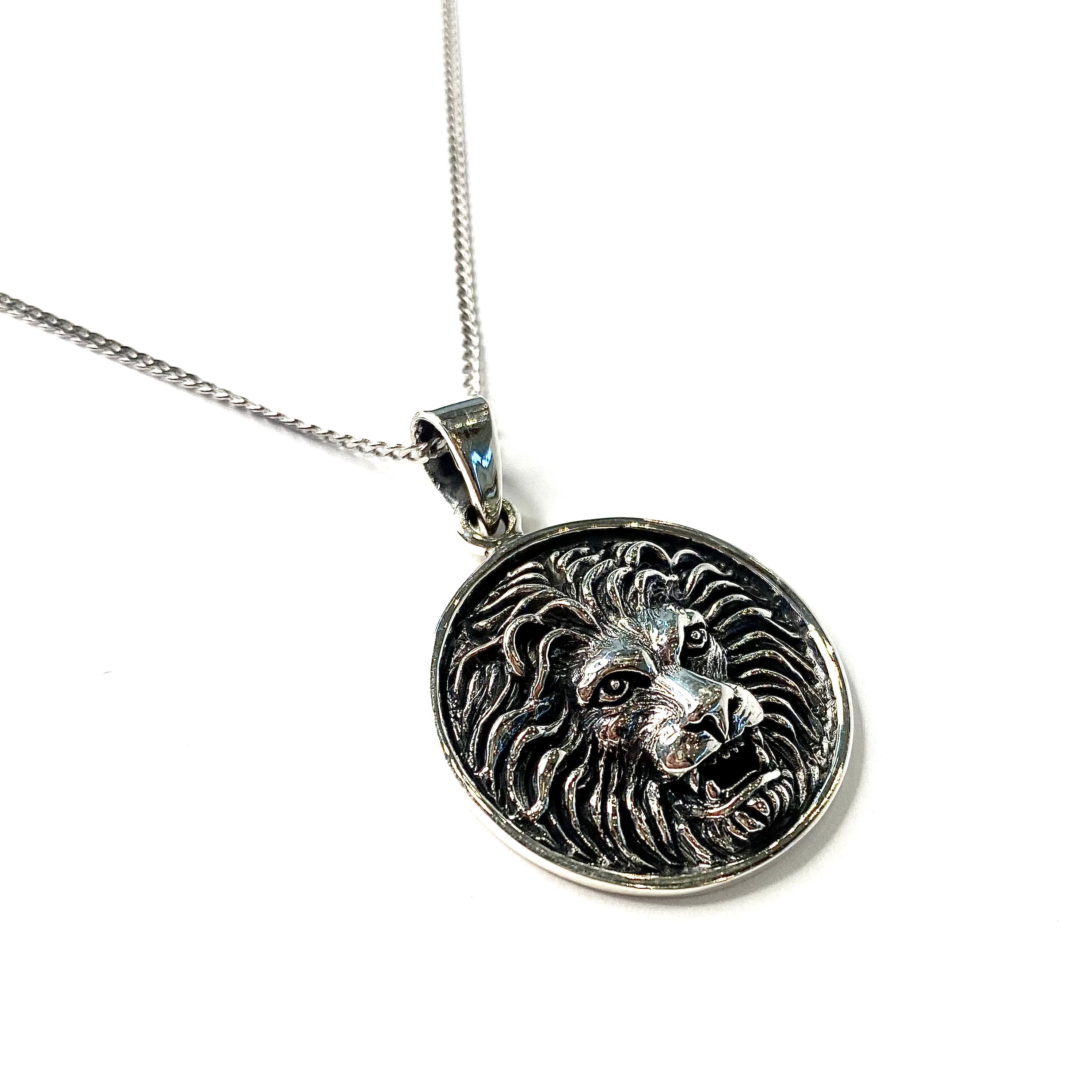 Paired with a sterling silver chain, this necklace offers a harmonious blend of elegance and impact. Its high-quality construction ensures durability and enduring shine. Channel your inner strength and unleash your confidence with this regal lion necklace, a symbol of power and majesty. Make a bold statement in fashion while embracing timeless charm.