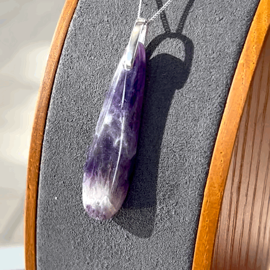 • Natural Beauty: Each Dog Teeth Amethyst pendant is unique, showcasing the distinct banding and vibrant colors of the gemstone.