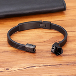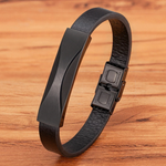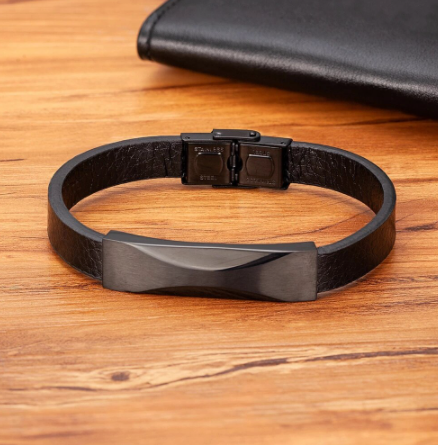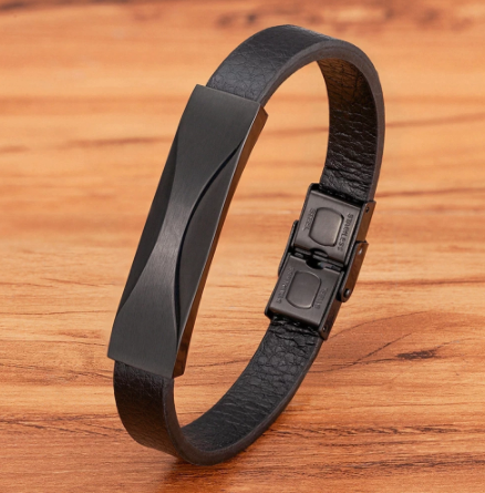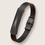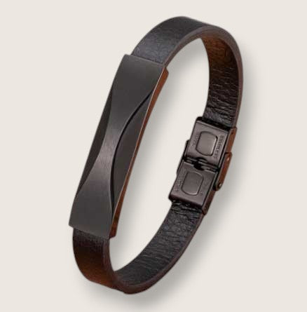 Premium 316 Stainless Steel geometric design triple plated to ensure long life, Genuine Leather
