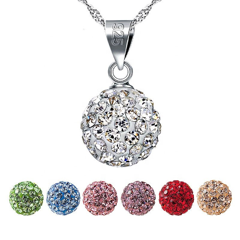 Enjoy these premium sparkly glitz ball pendant which is crystal-covered and 10mm in diameter and paired with a sterling silver chain. Material: Pure 925 Sterling Silver