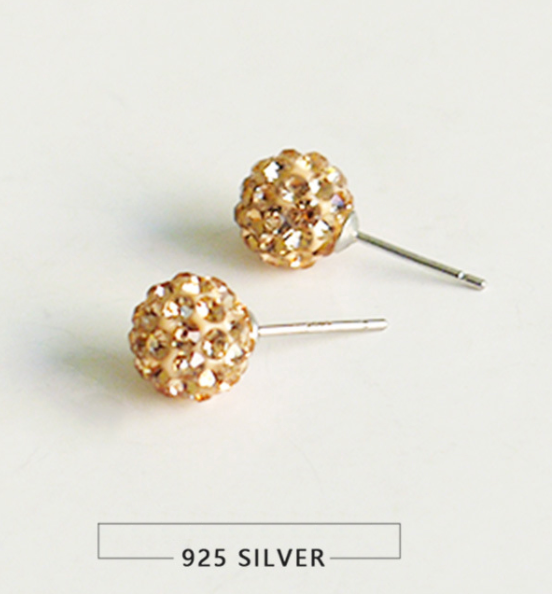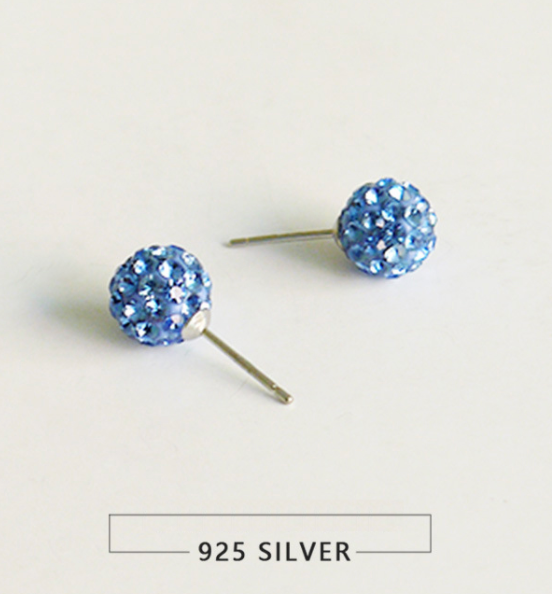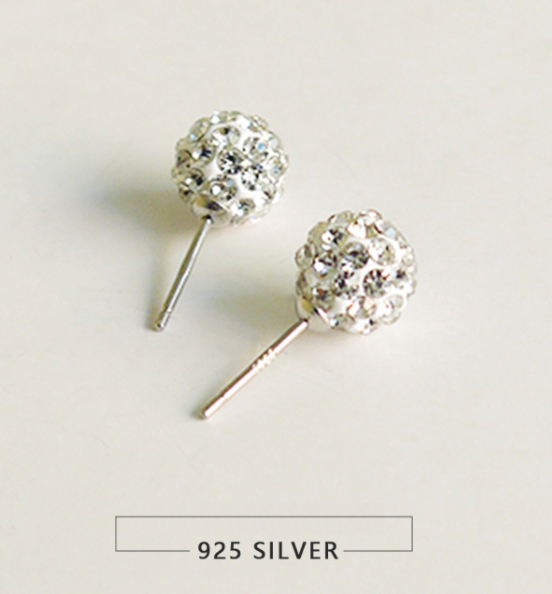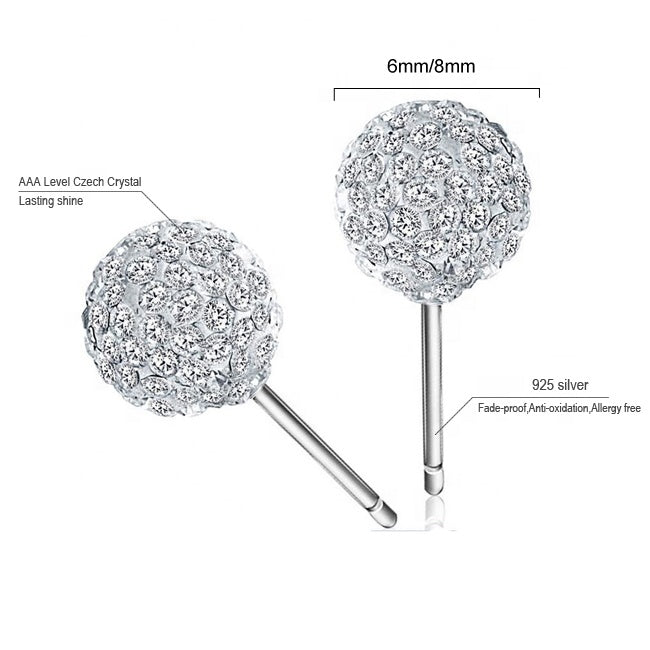 Handmade glitz Ball stud earrings featuring Czech crystal and sterling silver rhodium treated post that has no nickel.