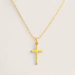 The cross measures 16mm tall and 9.4mm wide — a subtle reminder that faith and grace are carried close to the heart.