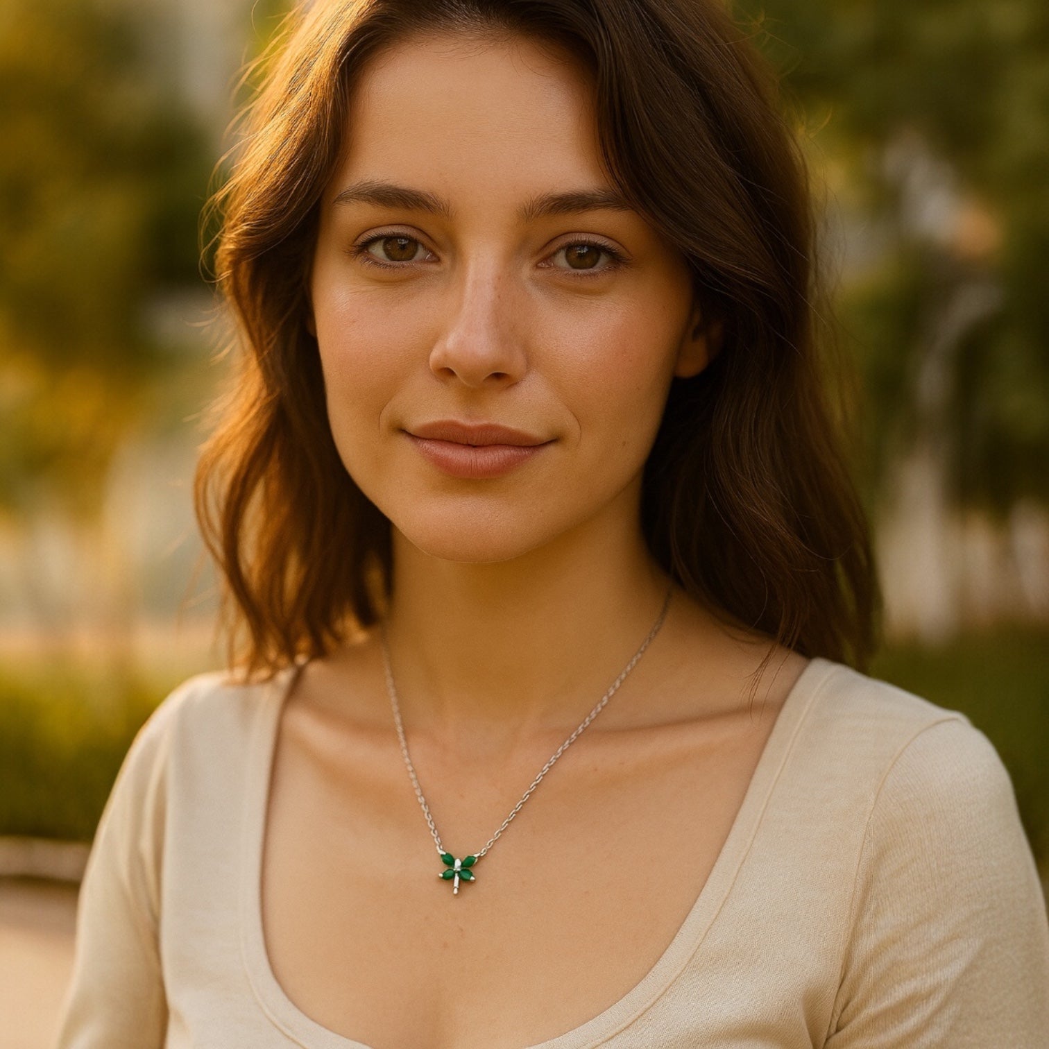 • Pendant Dimensions: 8mm (L) x 8mm (W) dragonfly with green cubic zirconia