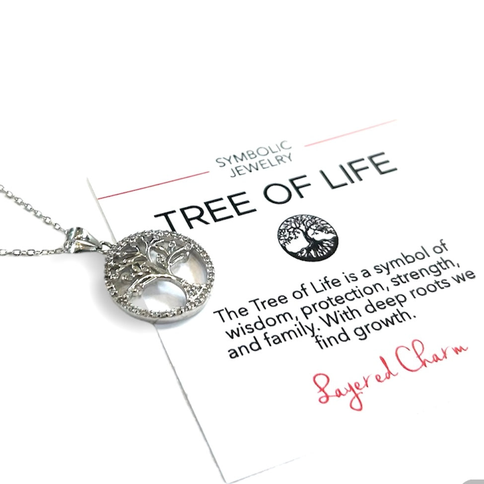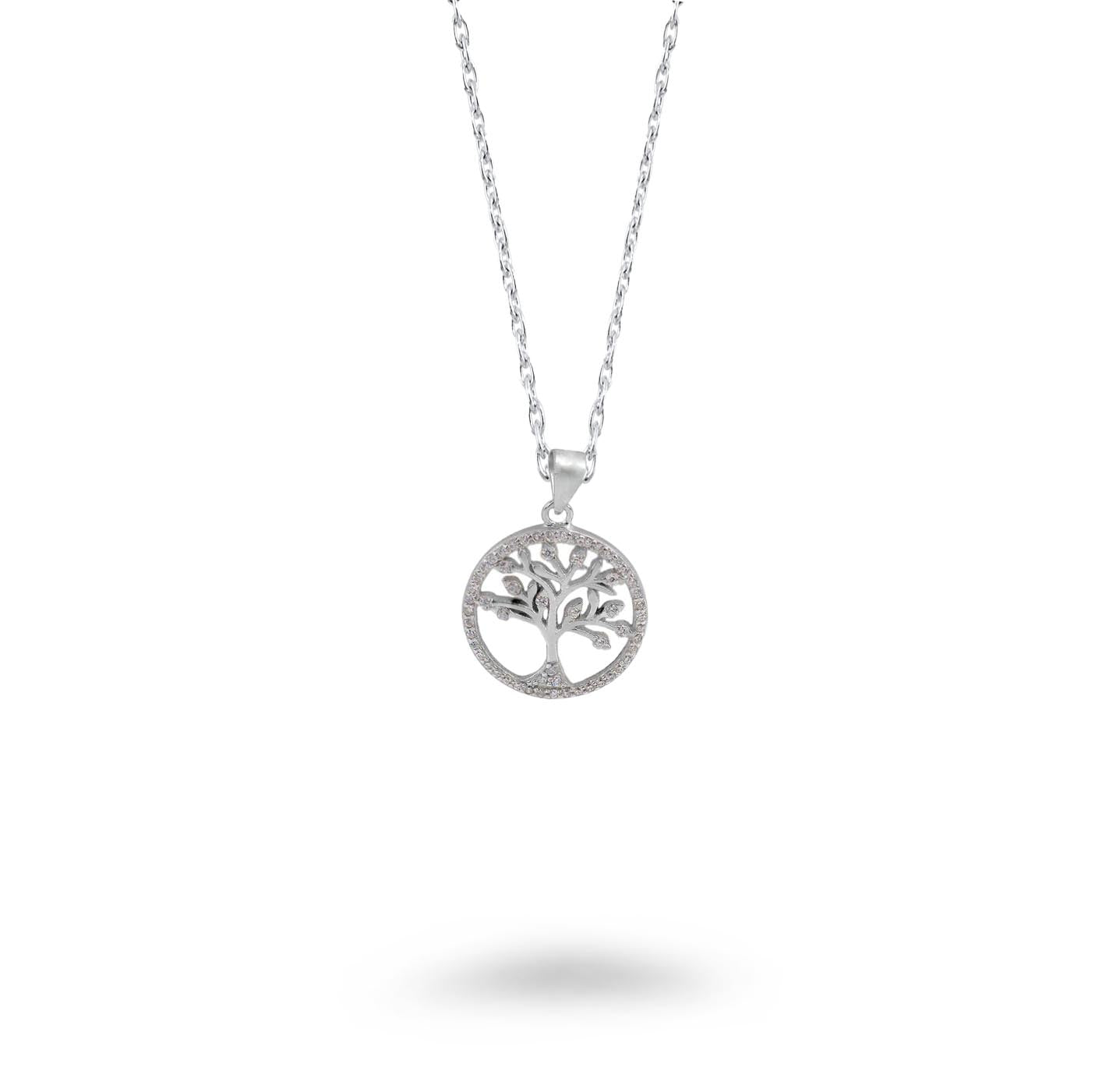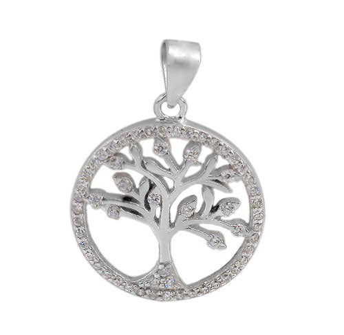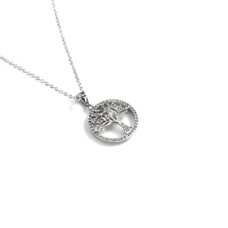 Sterling silver with rhodium tree of life pendant, 18mm diameter.
