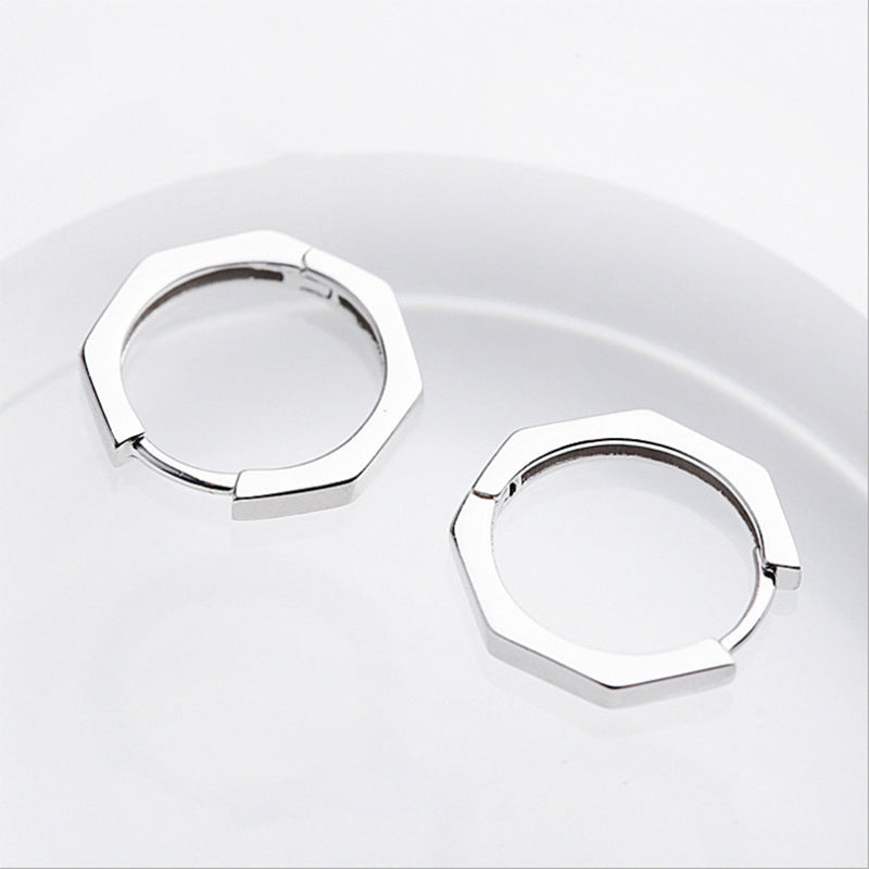 Hexagon Smooth Huggie Earrings