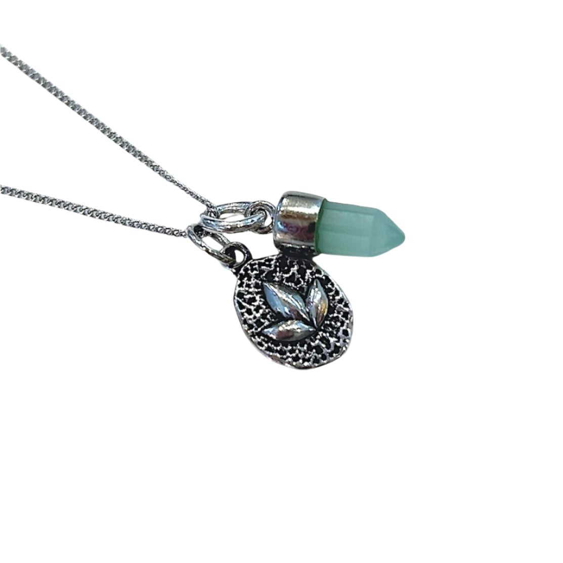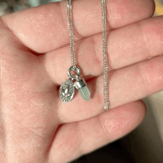 The gemdrop collection is Layered Charm's pairing of a beautiful symbolic pendant with a semiprecious gemstone to enhance the metaphysical strength of the jewelry piece.