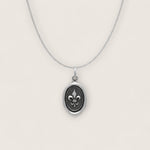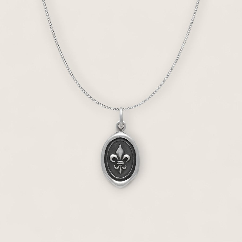 Introducing our Sterling Silver Medieval Wax Seal Fleur de Lis Pendant Necklace, a symbol of timeless elegance and rich heritage. The meticulously crafted 21mm by 11mm pendant boasts a captivating fleur-de-lis imprint, reminiscent of medieval symbolism. Cast in sterling silver, the pendant exudes both sophistication and historical allure. Paired with a durable rhodium-plated sterling silver chain, this necklace seamlessly blends classic style with lasting resilience. Embrace the regal charm and cultural significance with this exquisite piece, a perfect addition to your collection for those who appreciate the fusion of history and aesthetic beauty. Illuminate your style with the essence of medieval grace.