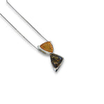 Sterling Silver Amber Slider Pendant Necklace - 13x29mm, Abstract Design with Cognac and Green Amber - 18"