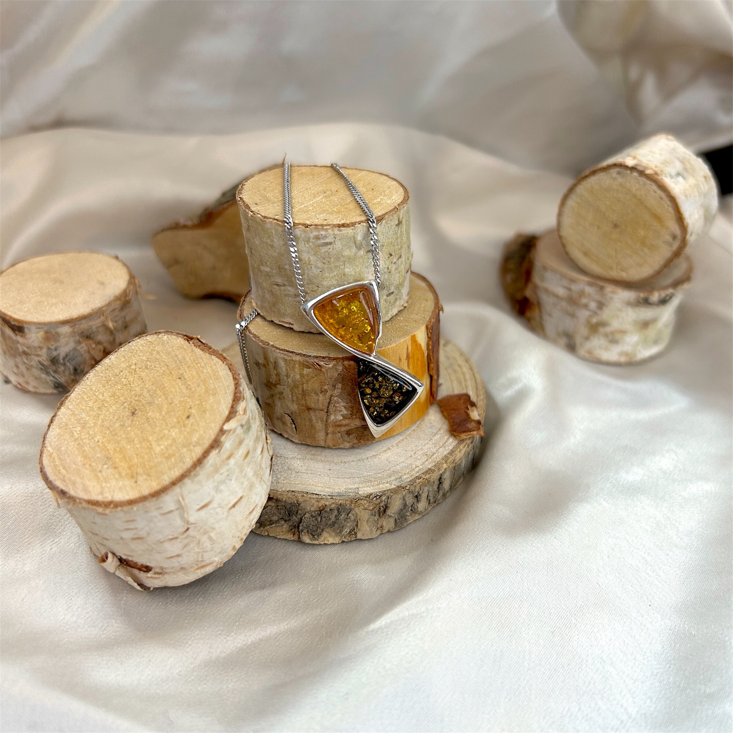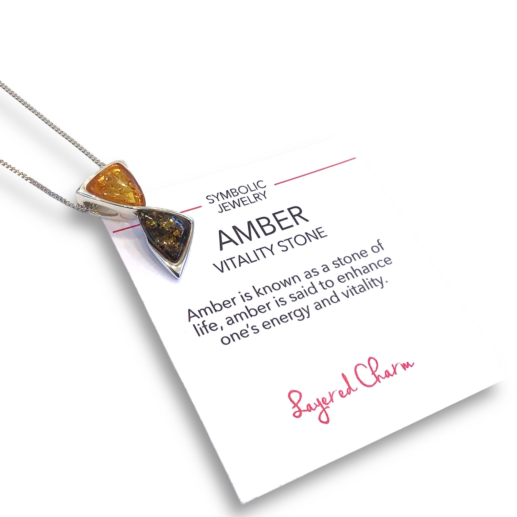 This necklace effortlessly combines contemporary style with the timeless beauty of amber, making it a standout addition to any jewelry collection. Perfect for those who appreciate a blend of elegance and modern design.