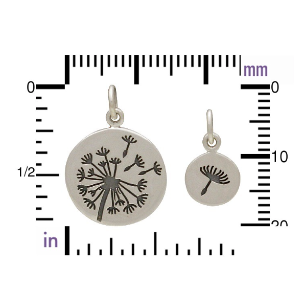 Measurement is for the large dandelion charm. Small dandelion charm measures: 14.5mm L, 8mm W, and 1mm H.