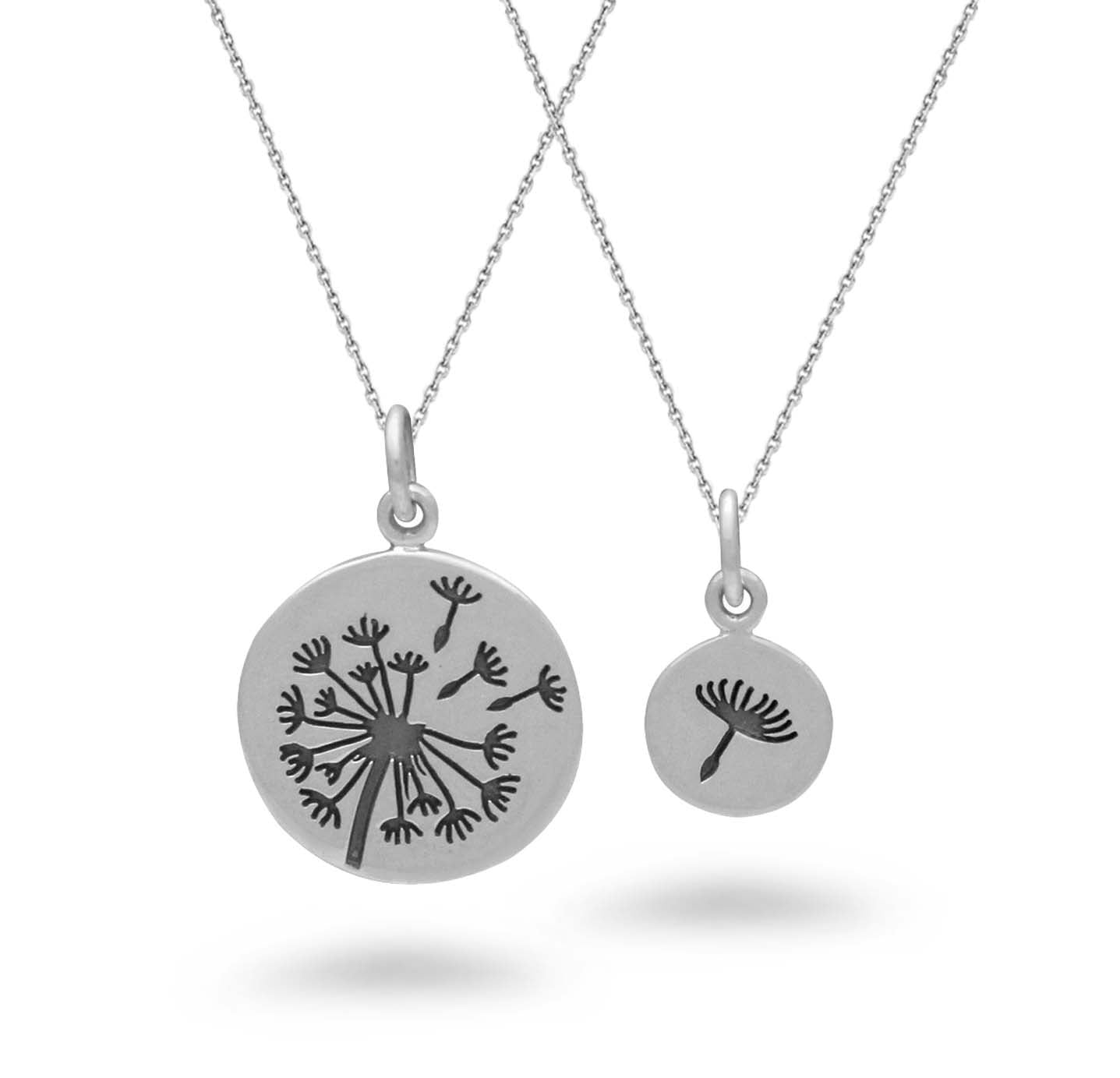 Adorable and memorable is this sterling silver heart set perfect for any mother, daughter, or best friend duo. Sterling Silver Big and Small Dandelion necklace Set.