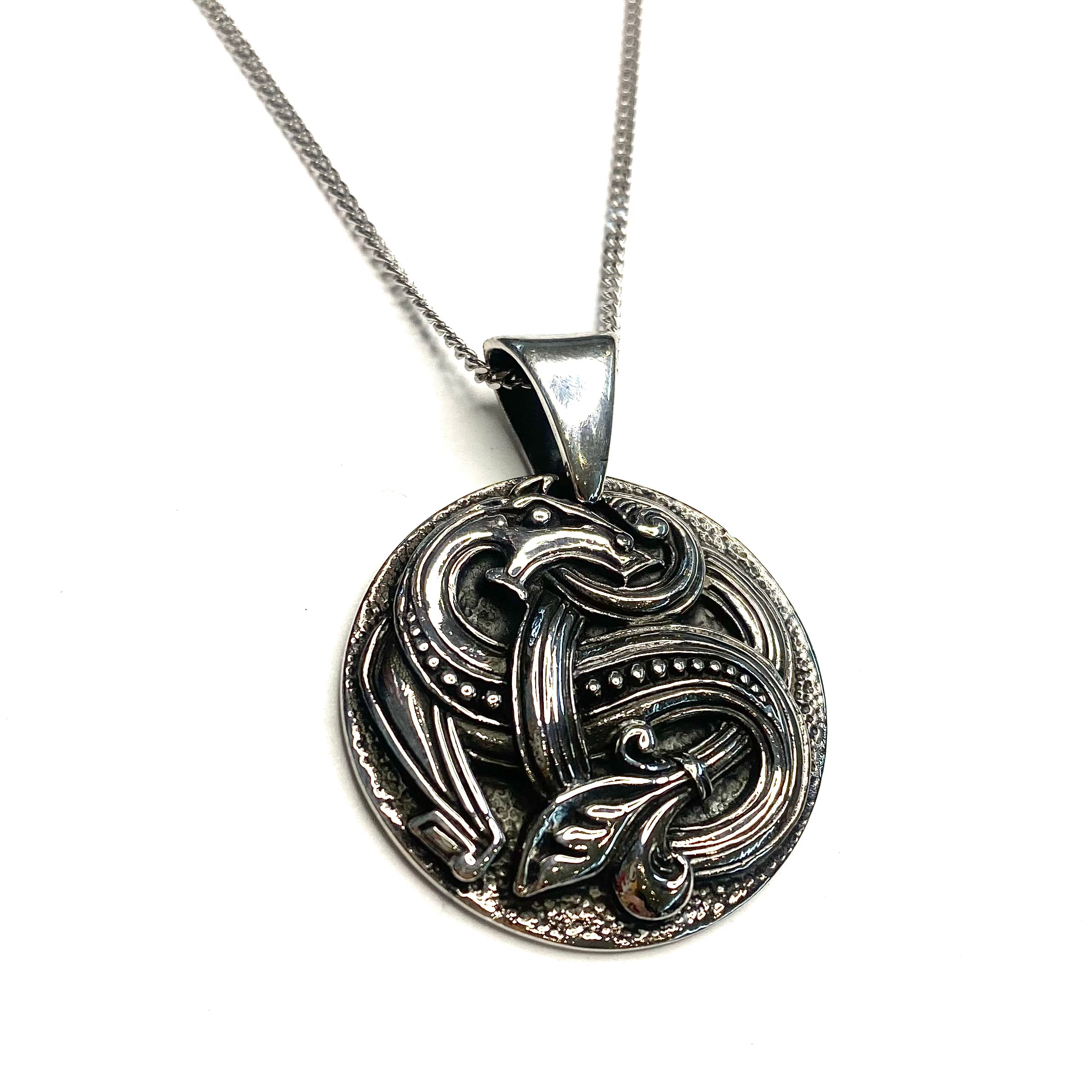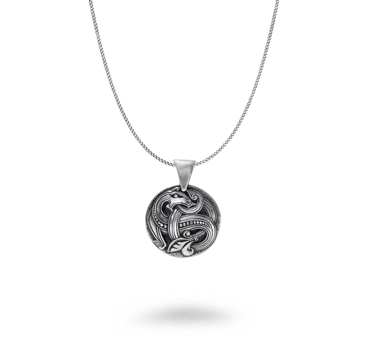 Showcasing an eye-catching dragon figure, this Sterling Silver necklace is sure to impress. Approx pendant size: 26mm L x 3mm T. Paired on a sterling silver chain.