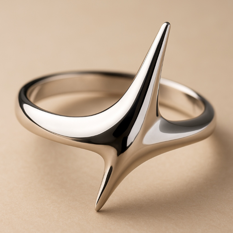 Cut through the static. Featuring a bold, aerodynamic spike design, this polished stainless steel ring feels like a weapon of style — minimal, sculptural, and full of voltage. Its clean silhouette and fierce point channel futuristic energy, while the comfort-fit band makes it wearable for everyday rebellion.