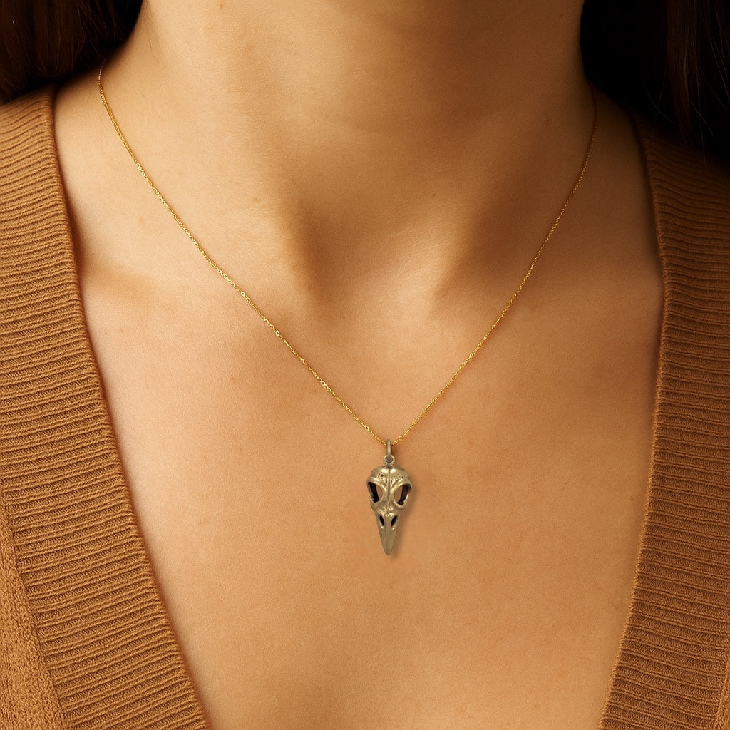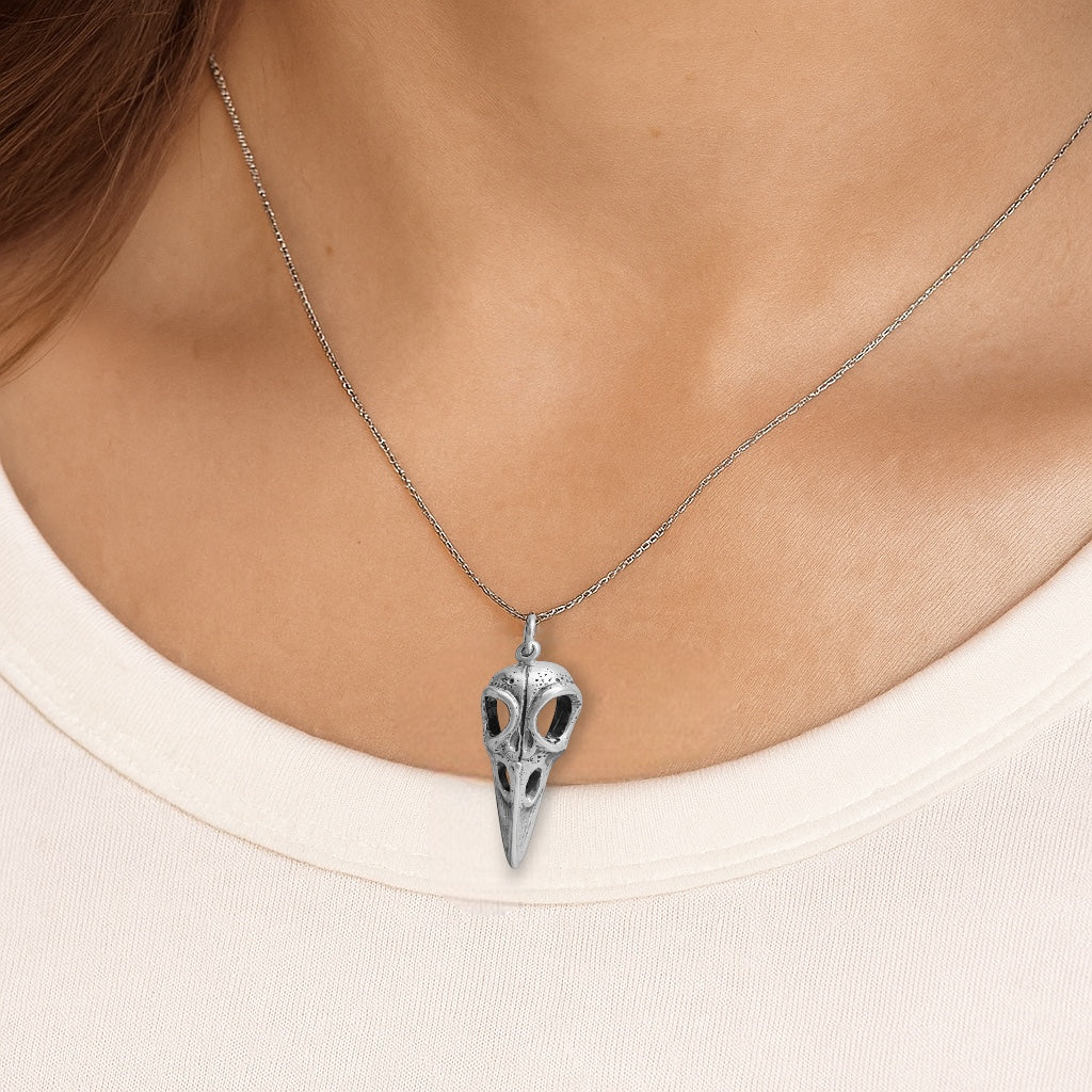 This bird skull is beautifully detailed. It is designed on all sides, but the skull is hollow. Wear this talismanic charm to evoke confidence to soar to new heights, to give you vision when starting something new, and to energize your creativity.