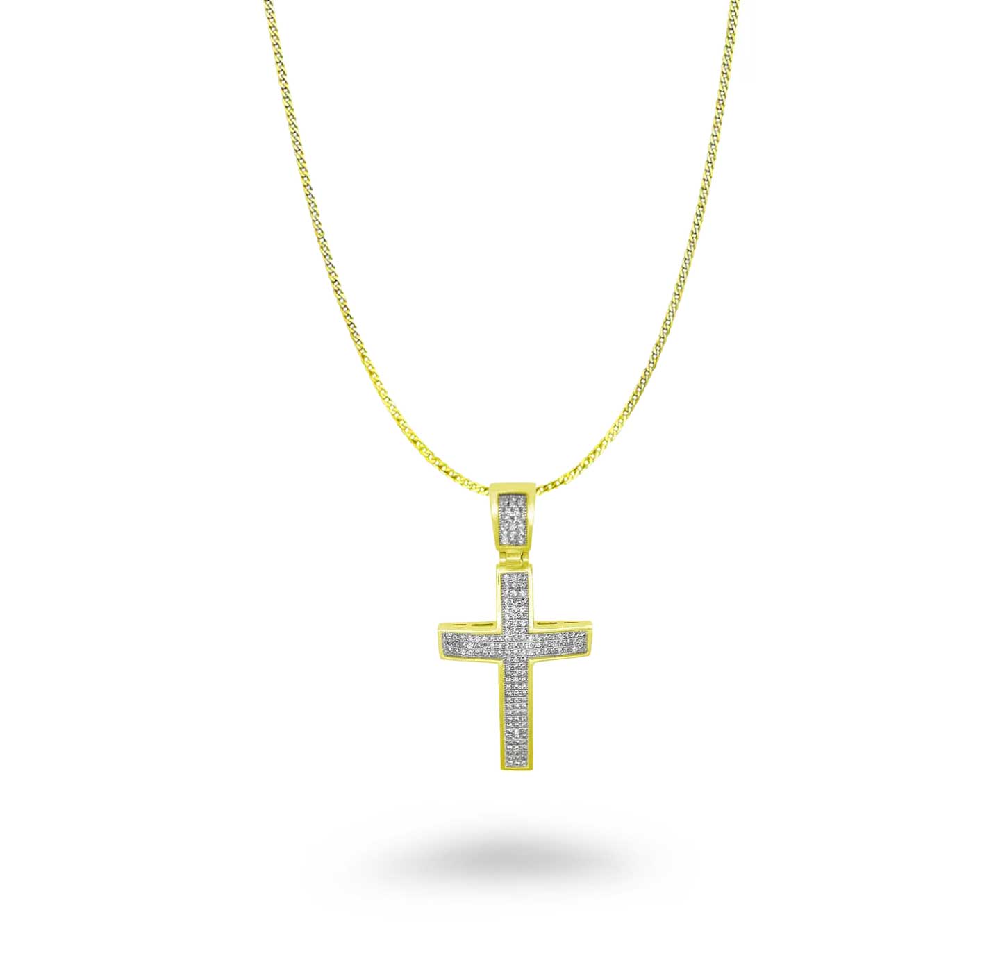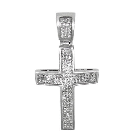 Elevate your style with our exquisite Sterling Silver Cross Pendant. Crafted with precision and adorned with glistening cubic zirconia, this 33x22mm masterpiece exudes timeless elegance. The pendant's rhodium or gold finish ensures enduring brilliance, resisting tarnish while enhancing its lustrous shine. Suspended gracefully from a matching sterling silver chain, this pendant is a symbol of faith and fashion intertwined. Whether you wear it for a special occasion or as an everyday accessory, its sophistication and radiance will always captivate. Embrace the allure of sterling silver and the sparkle of cubic zirconia – a perfect blend of spirituality and glamour. Order yours today and cherish its beauty forever.