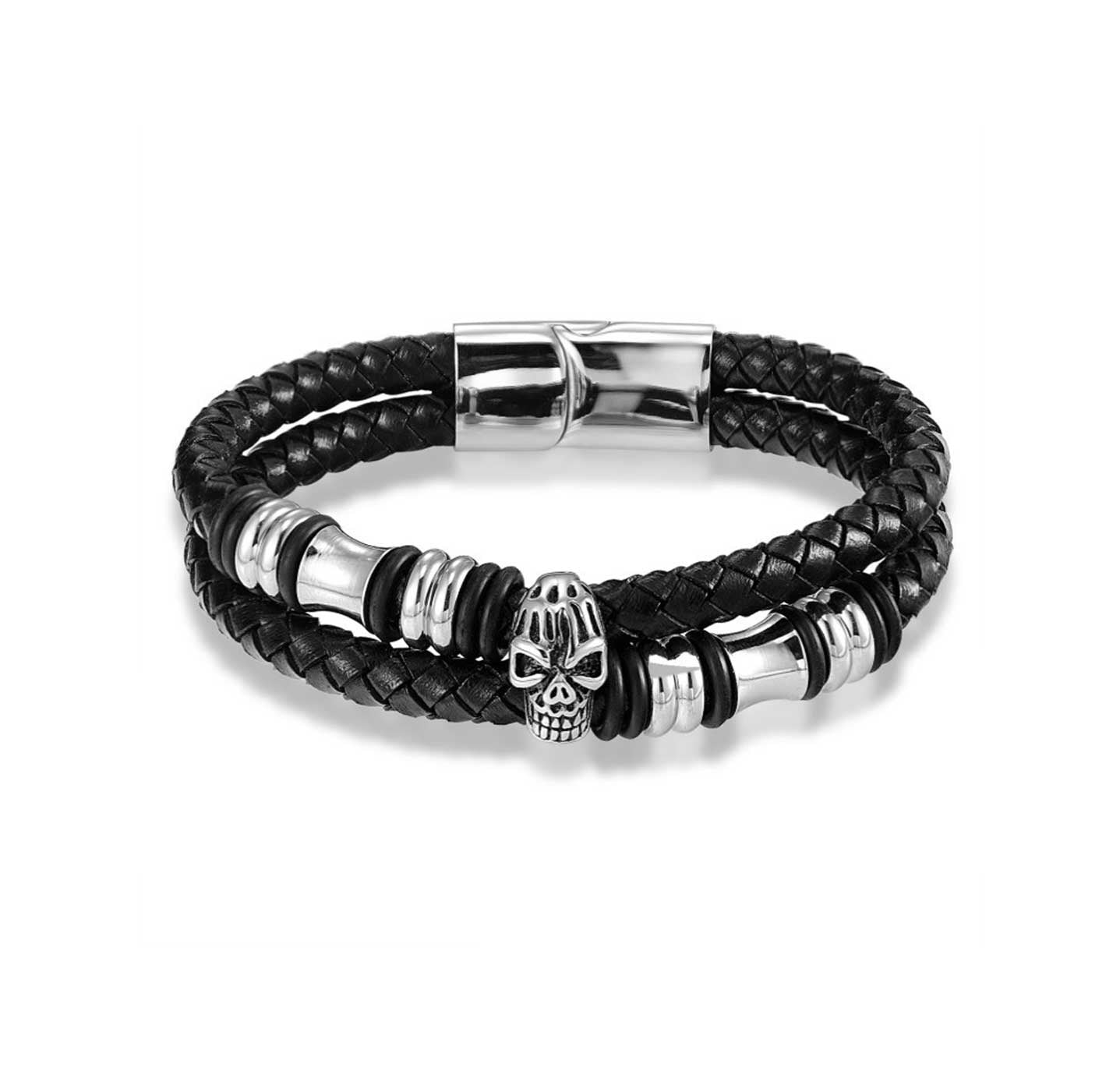 Unleash your edgy style with our Multi-Wrap Genuine Leather Men's Bracelet, adorned with skull-shaped stainless steel beads for a rebellious twist. Crafted with meticulous attention to detail, the genuine leather wraps around your wrist, exuding a rugged charm. The skull beads add a bold statement, infusing a touch of attitude into your look. The bracelet is not only a fashion statement but also a testament to durability, ensuring it withstands the test of time. The slide and magnet back clasp provide both security and ease of wear, making this accessory the perfect blend of rugged sophistication for the modern man.