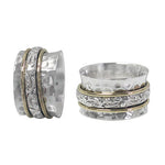 Sterling Silver with brass band, 2 tone meditation ring with hammered finished. Approx size: 14mm Width.