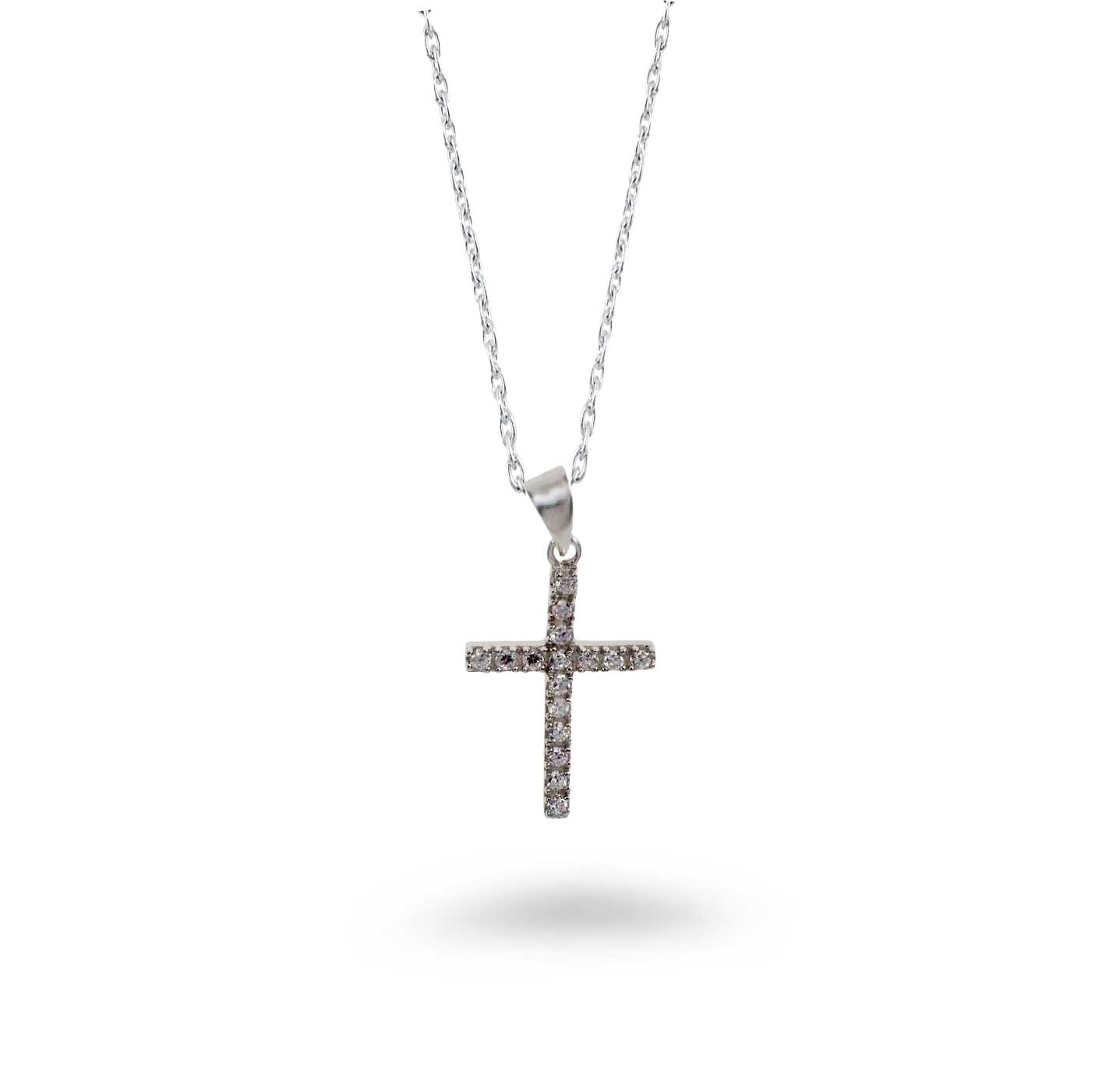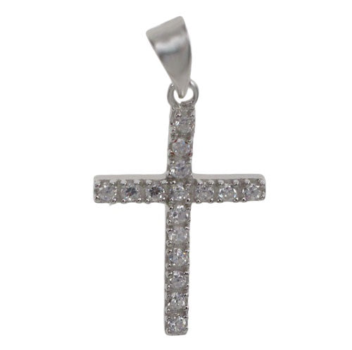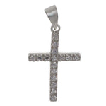 Rhodium plated on Sterling Silver, faceted cross shape stone pendant. Approx pendant size: 23mm L x 16mm W.