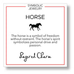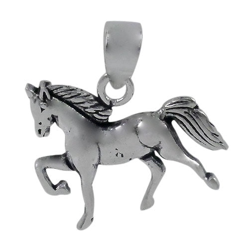 Sterling Silver, smooth horse pendant. Approx frame size: 18mm L x 21mm W x 2.5mm T. paired with a sterling silver chain.