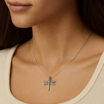 Graceful and full of meaning, this detailed dragonfly pendant features slightly curved wings that give the impression of hovering mid-flight. Symbolizing transformation, adaptability, and joy, the dragonfly spirit invites lightness into life’s changes. Cast and hand-finished in Thailand, this pendant is made from recycled 925 sterling silver, adding sustainable beauty to its timeless design. Paired with a sterling silver chain and secure spring clasp.