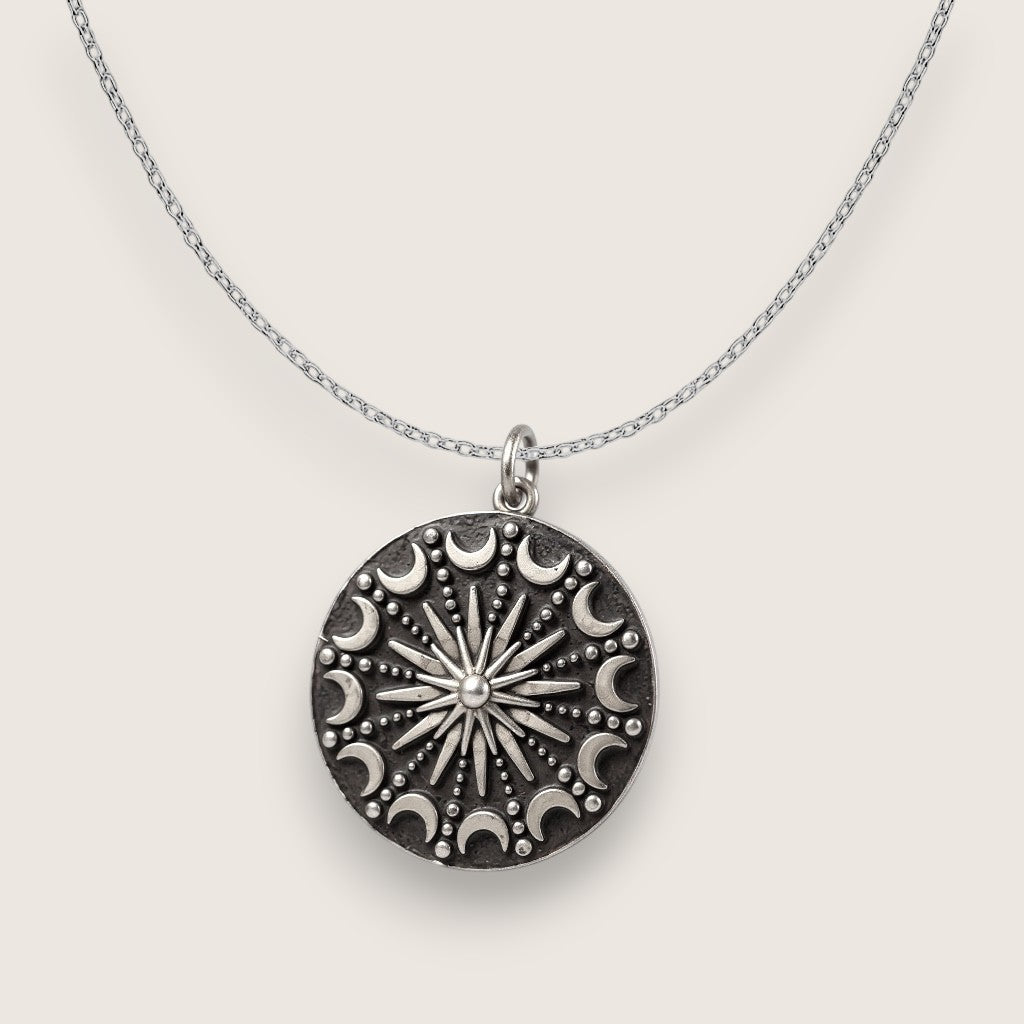 The sun and moon mandala represents all the phases of the moon, symbolizing our path through life to achieve a place of enlightenment.