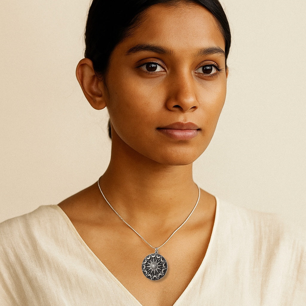 Description: Sterling Silver or Bronze pendant with black rhodium sterling silver chain