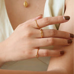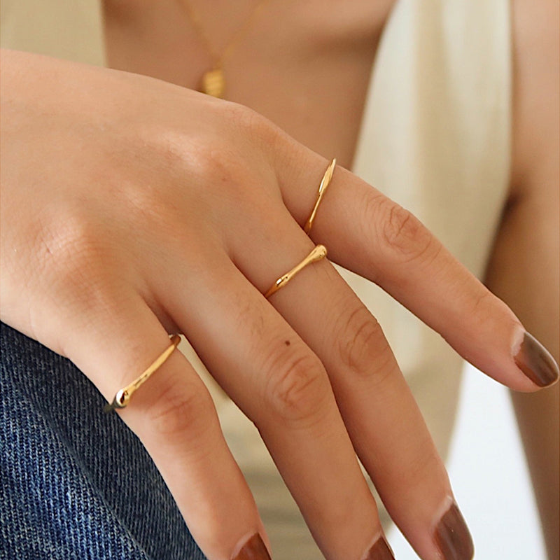 The Molten Flow Ring captures the beauty of movement frozen in time. Crafted in stainless steel and finished with rich gold plating, this abstract drip-inspired design gives the illusion of liquid metal wrapping around your finger.