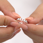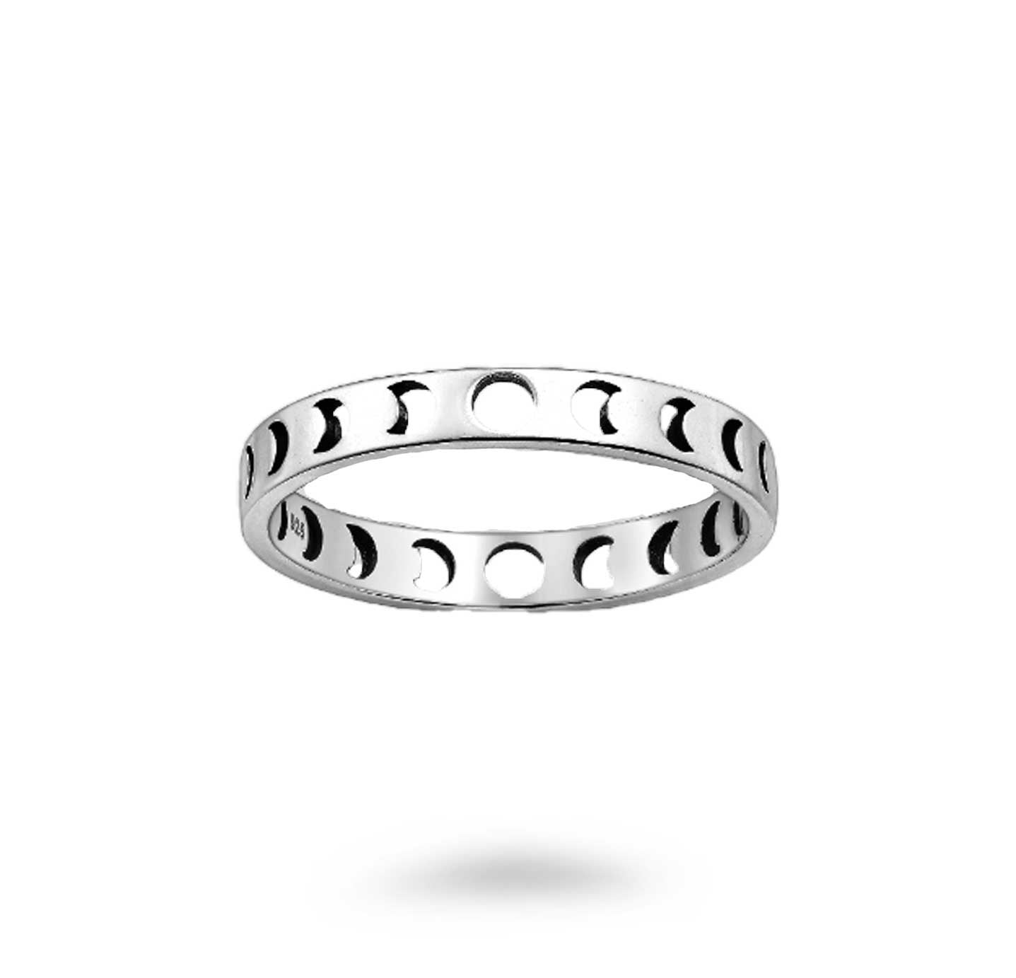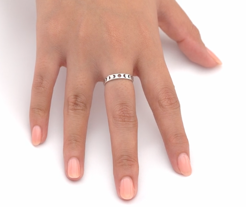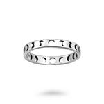 Sterling silver 3mm ring features the lunar moon phases cutout in an eternity style ring. Capture the beauty of the moon with our stunning Lunar Phases Ring. Crafted from 925 Sterling Silver, this oxidized beauty adds a touch of celestial charm to any outfit.