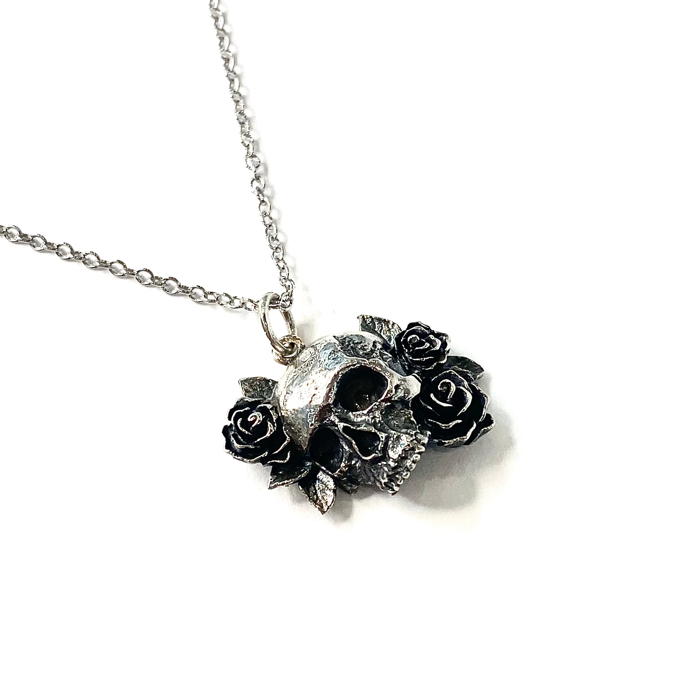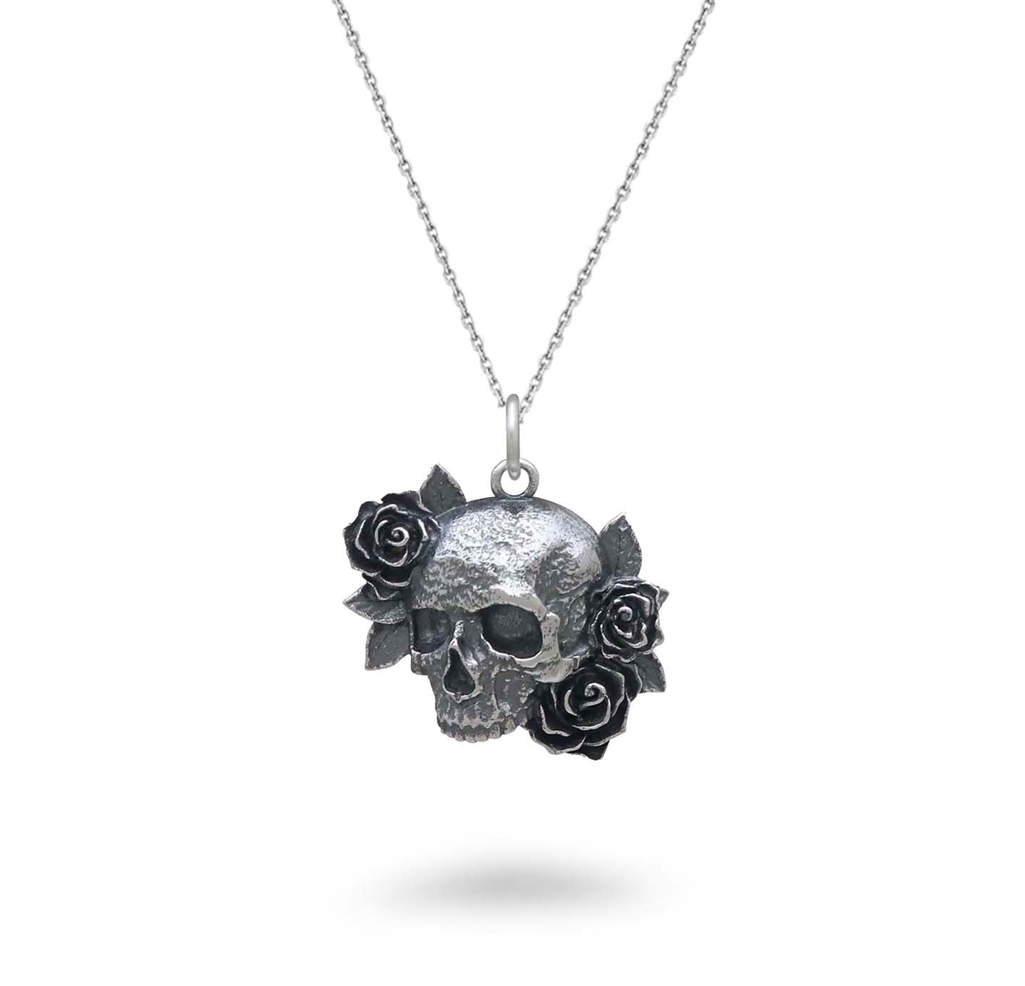 The skull on a bed of roses symbolizes our need to share our beauty to the world while we live it.