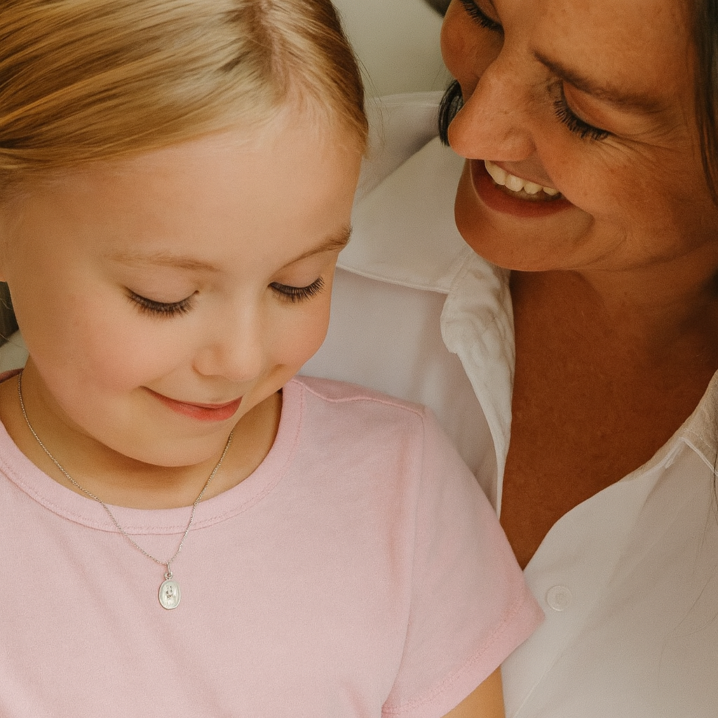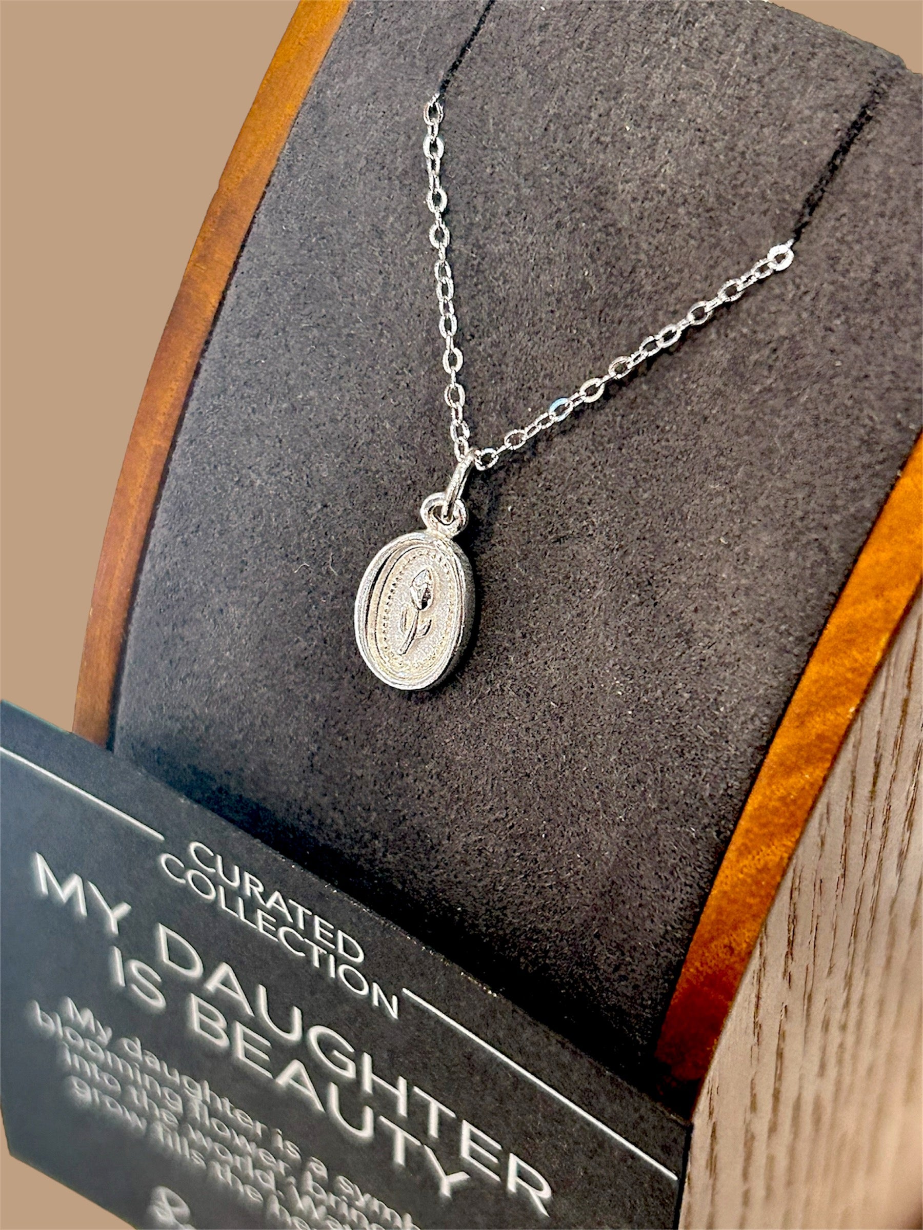 A tender symbol of love and pride, My Daughter is Beauty celebrates the journey of growth and grace. Just like a blooming flower, a daughter brings beauty and light into the world, filling the heart with endless joy. This delicately crafted sterling silver coin pendant features a subtle flower design, measuring 12mm tall by 8mm wide, and is paired with an 18" sterling silver chain. A meaningful keepsake to cherish always.
