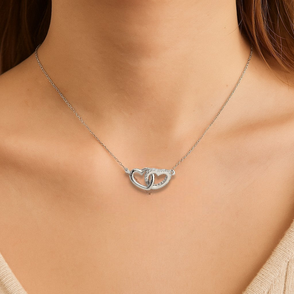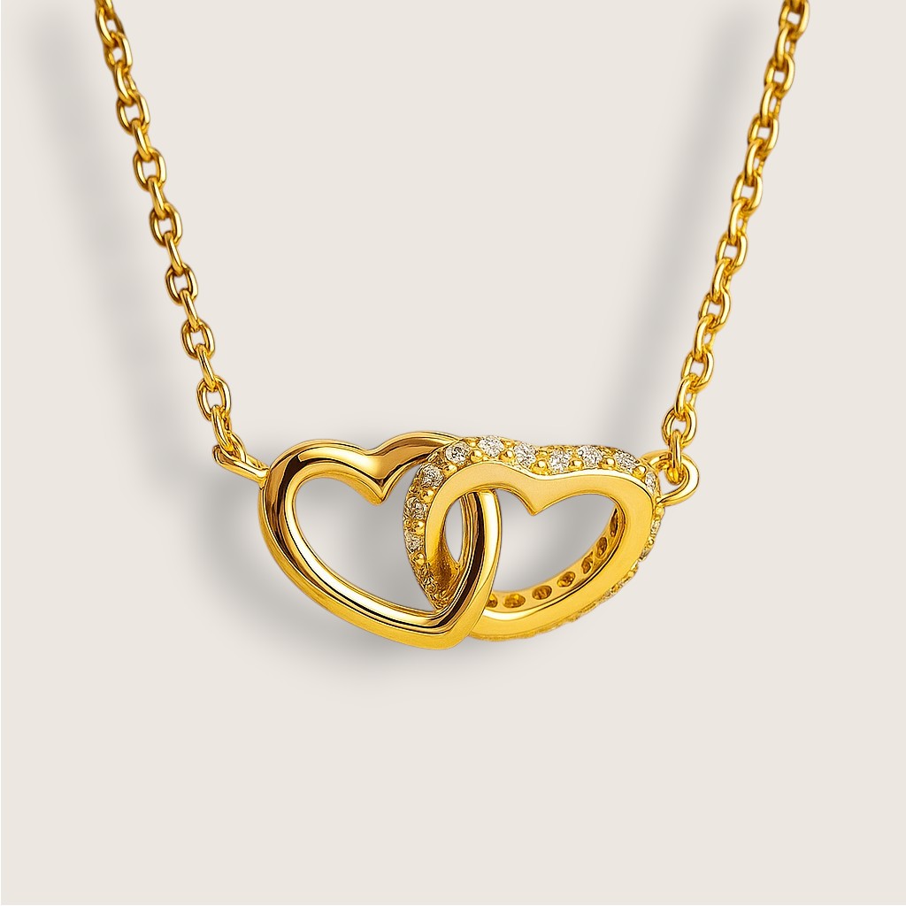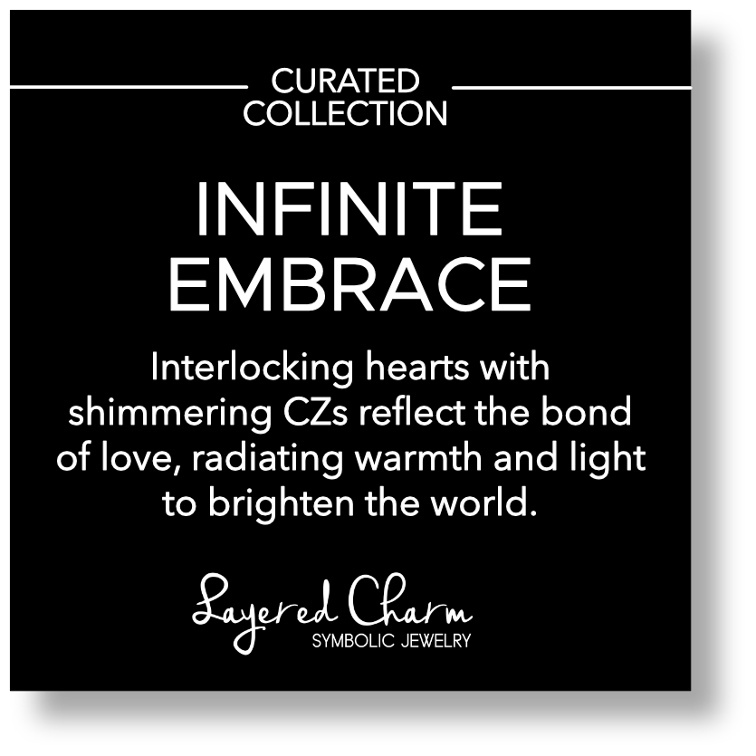 Interlocking hearts with shimmering CZs reflect the bond of love, radiating warmth and light to brighten the world. The Infinite Embrace Necklace captures the eternal connection between two souls, symbolizing devotion, unity, and the beauty of a love without end.