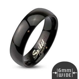 Stainless Steel Glossy Mirror Polished Black IP Plated Comfort-Fit Dome Band Ring, Width 6MM