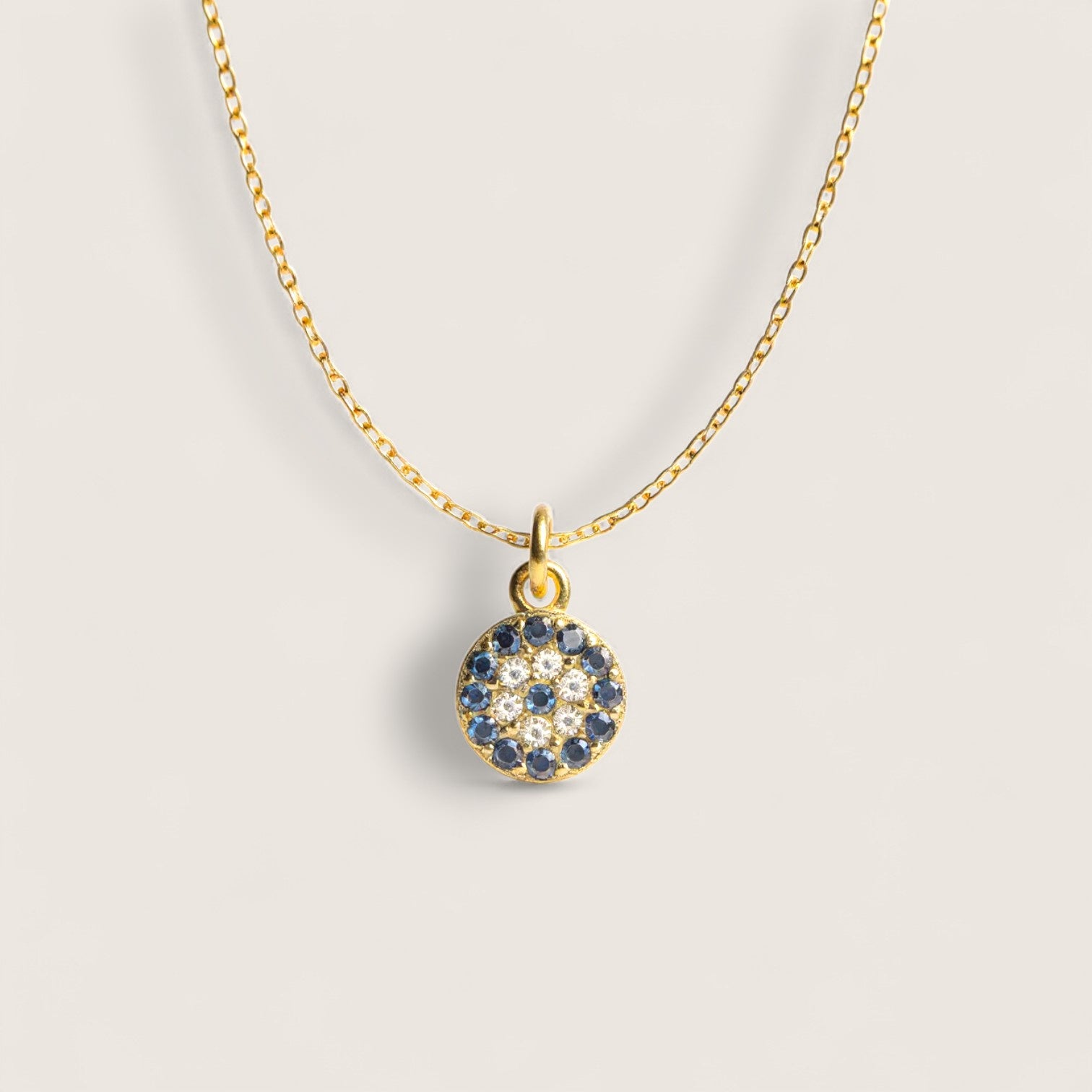 A timeless emblem of protection and light, the Radiant Gaze Necklace is designed to watch over you and reflect your inner strength. The blue and white CZ stones form the symbolic Evil Eye — believed to ward off negativity and invite calm, confidence, and clarity.