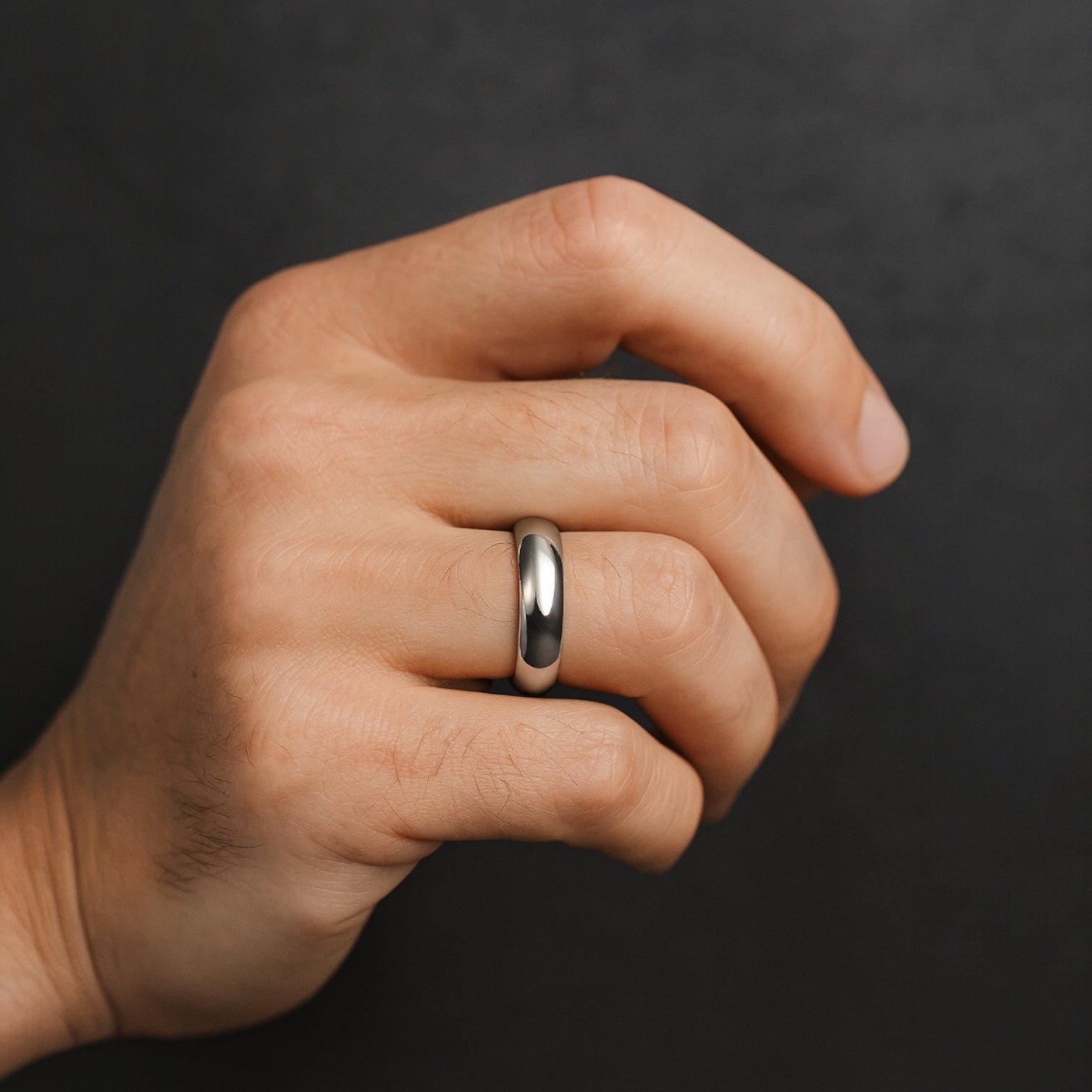 Grace in form, strength in essence. The Argent Arc is a polished dome ring crafted from solid 925 sterling silver, shaped with a smooth arc and finished to a brilliant shine. Its minimalist curvature and comfort-fit design make it an enduring piece for daily wear or ceremonial meaning. Choose from 4mm, 6mm, or 8mm widths to suit your style.