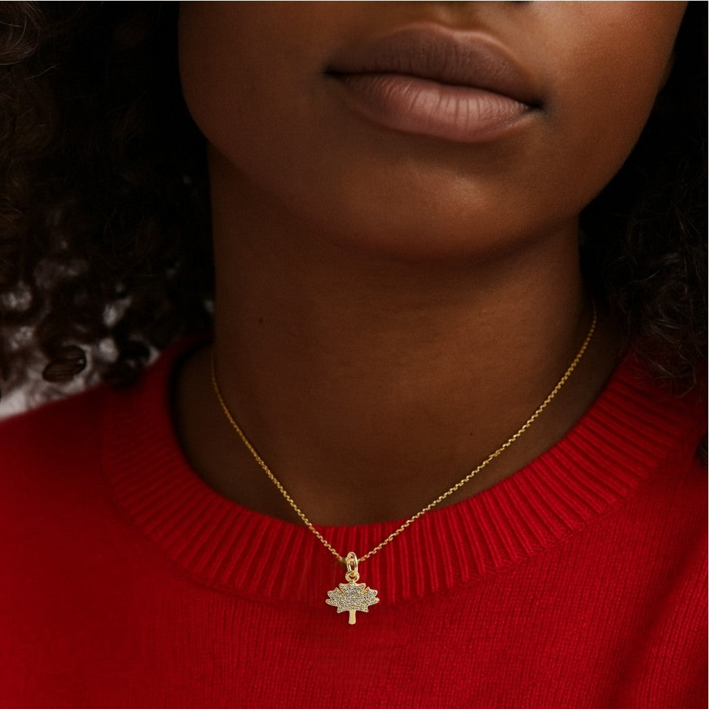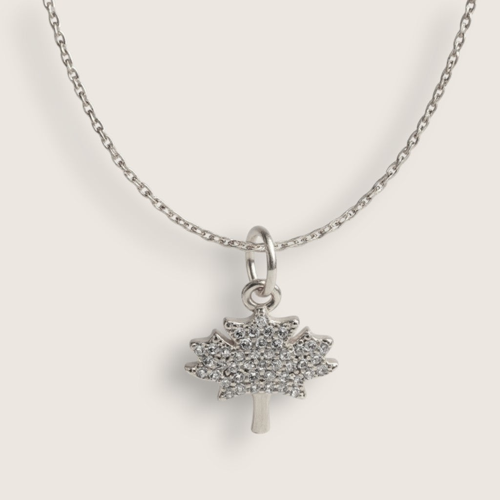 CZ Canada Maple Leaf Necklace