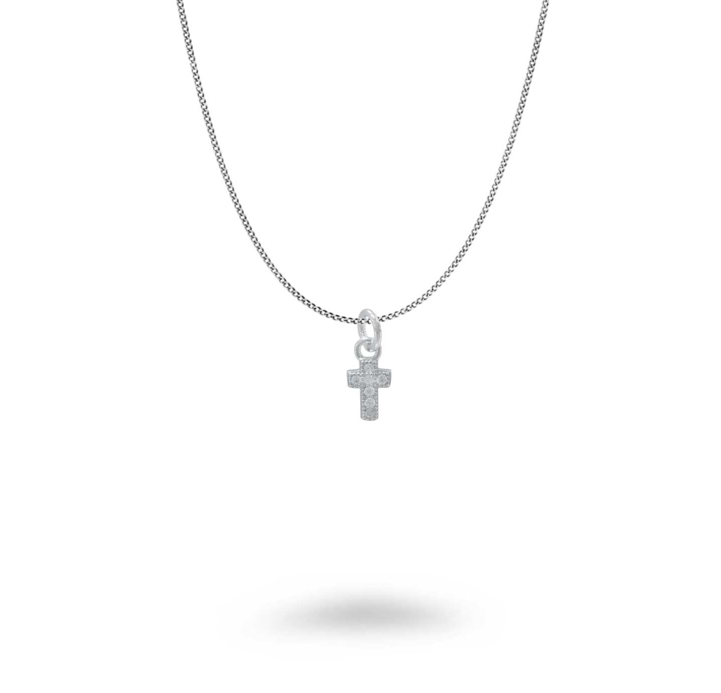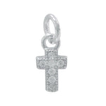 Introducing our Rhodium-Plated Sterling Silver Cross Charm Necklace, a symbol of faith and elegance. The dainty charm, measuring approximately 7mm in length, 5mm in width, and 1.5mm in thickness, features a brilliant cubic zirconia at its center, adding a touch of radiance. Suspended from a 4mm loop, this intricately designed cross exudes timeless grace. Paired with an 18" sterling silver chain, the necklace is a harmonious blend of spiritual significance and contemporary style. The rhodium plating ensures enduring shine, making this necklace a meaningful and versatile accessory for daily wear or special occasions. Embrace the beauty of faith with this charming cross necklace.