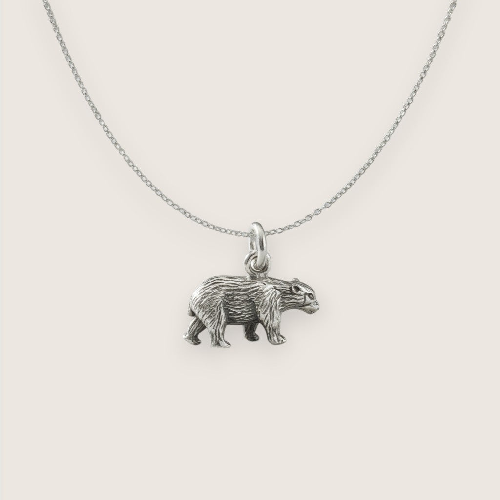 Small in size, bold in spirit. The Wildstride features a finely detailed 3D bear pendant—measuring 14x14mm—crafted in solid sterling silver. With lifelike texture and a confident stance, this miniature guardian channels the raw strength and grounded presence of the wild.