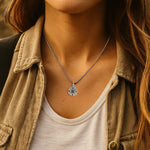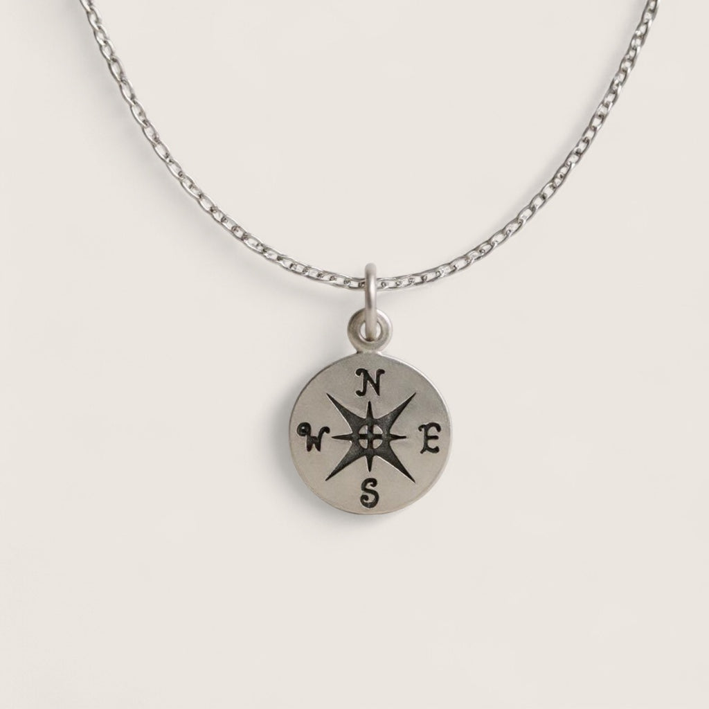Find your direction with the True North necklace, a timeless symbol of guidance and adventure. This sterling silver or bronze pendant features a finely detailed compass rose, reminding you to stay true to your path wherever life takes you. Measuring 16x10mm, it rests elegantly on an 18" rhodium or 18kt plated sterling silver chain, making it perfect for everyday wear or as a meaningful gift for travellers, dreamers, and explorers.