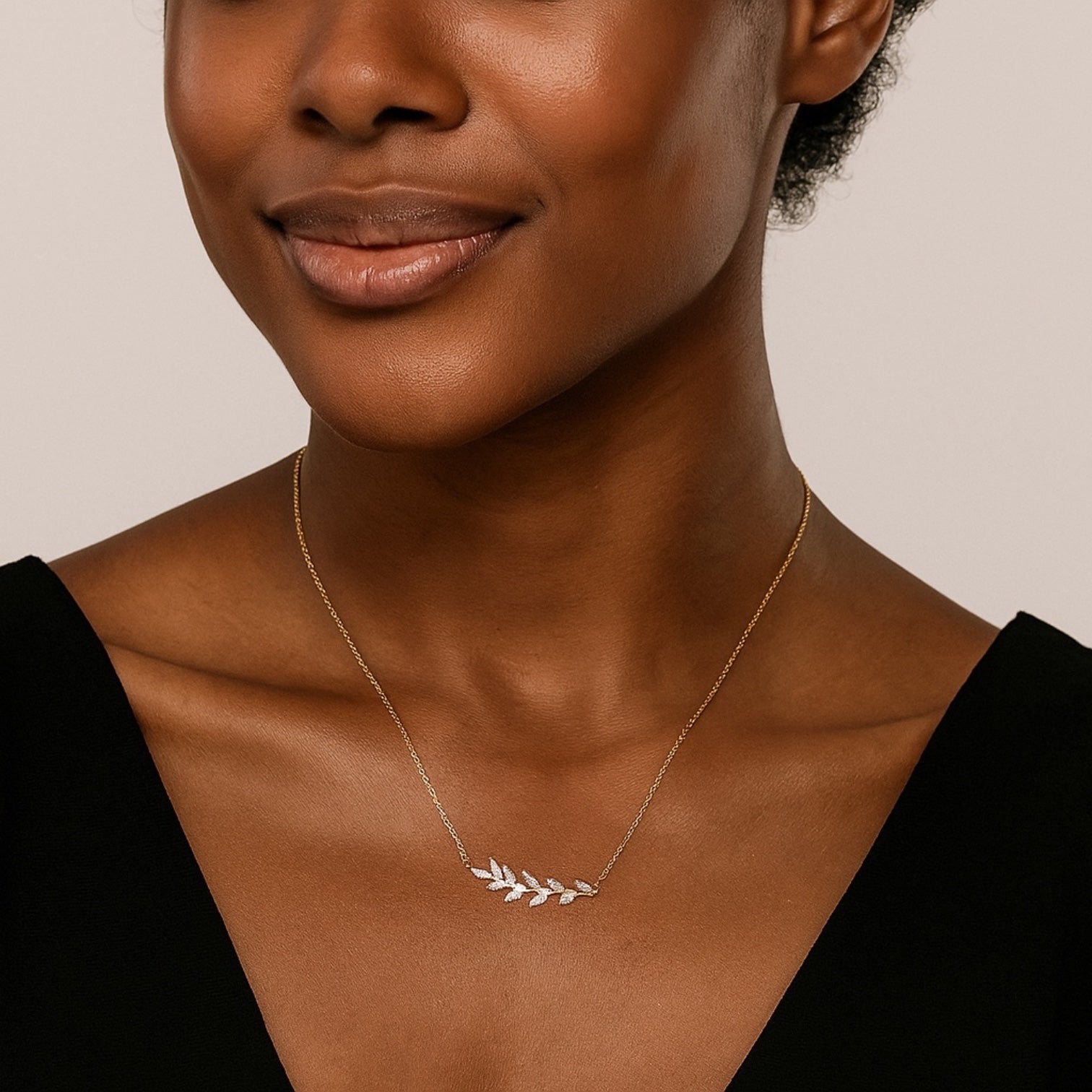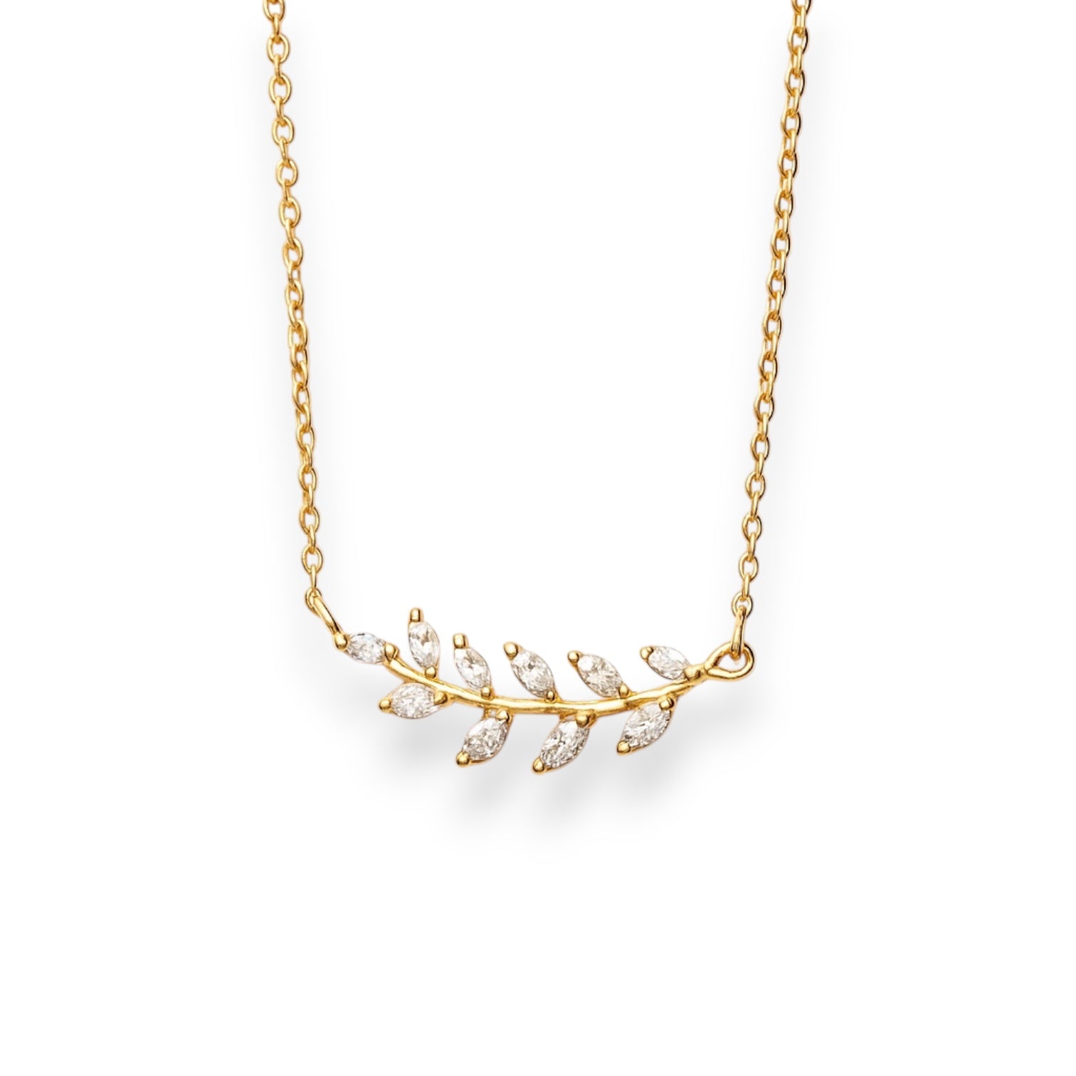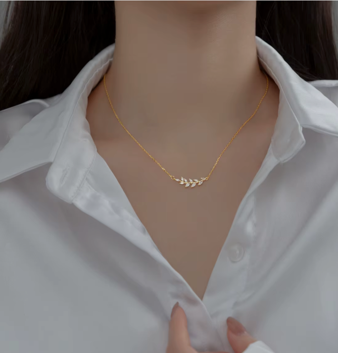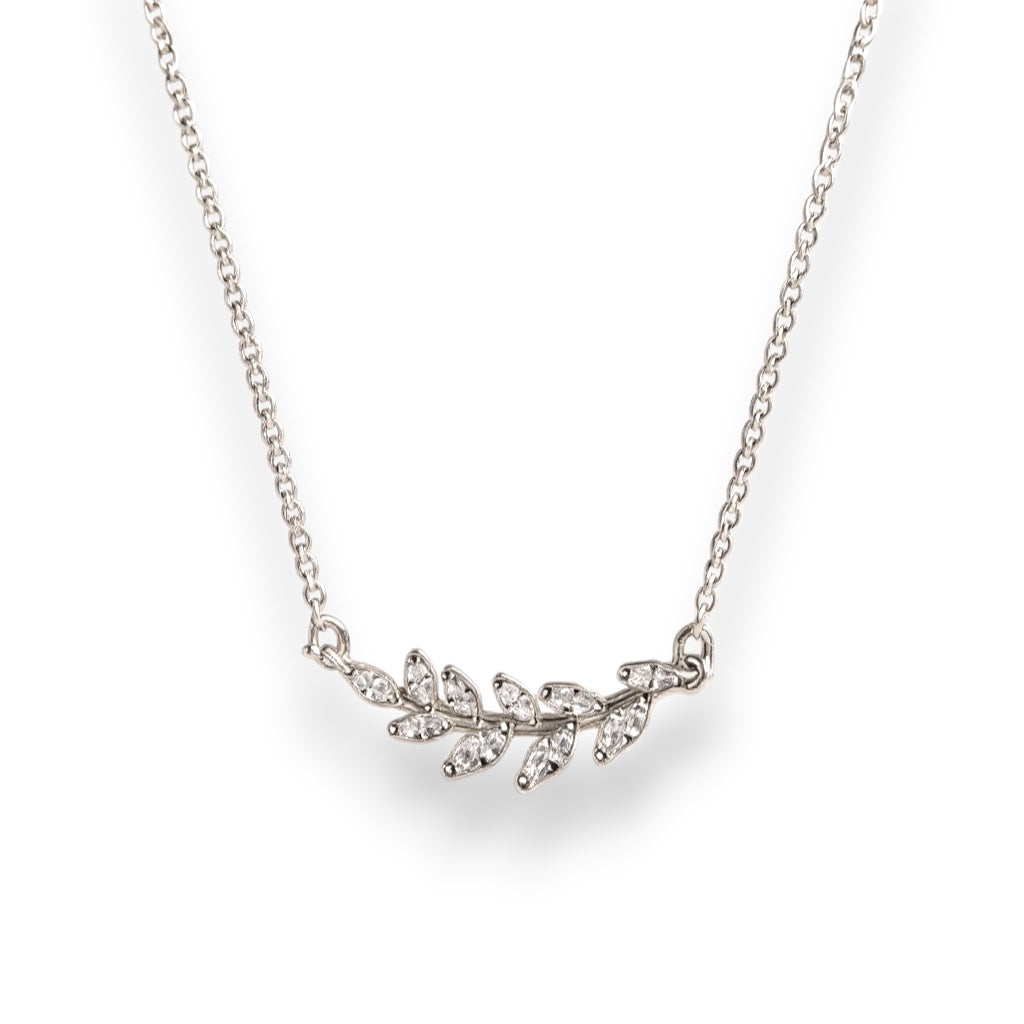 Olive Whisper – Silver CZ Leaf Necklace
