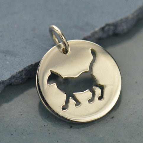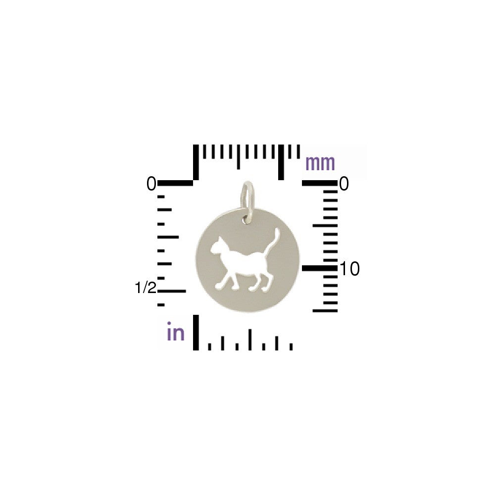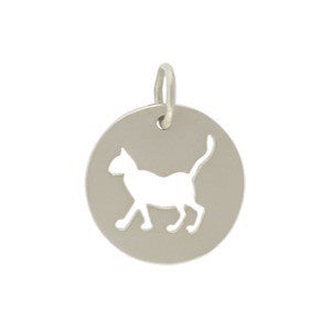 This sterling silver cat charm features a round disk with a cute kitty cutout.