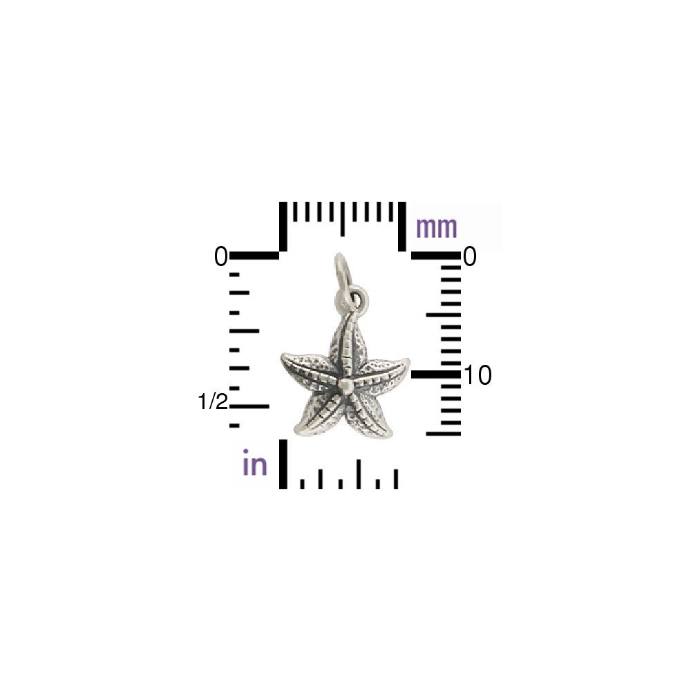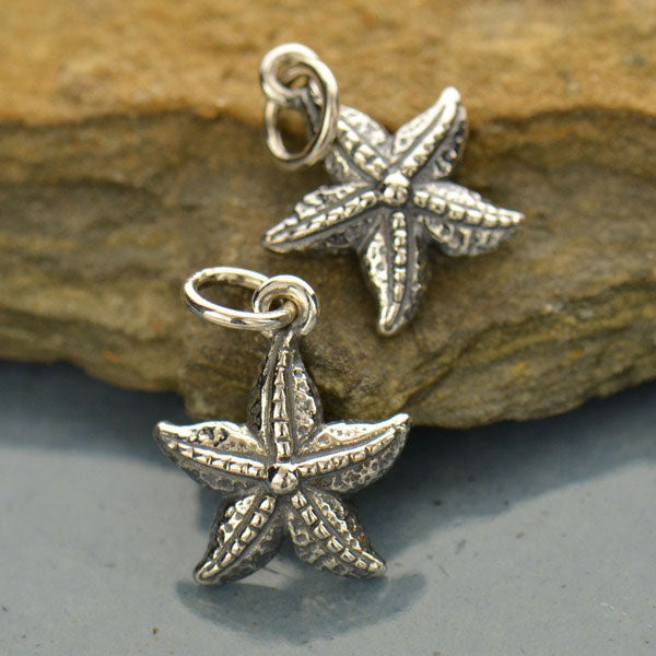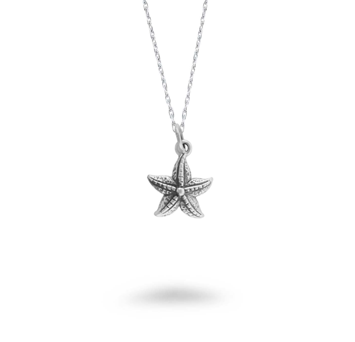 Enjoy this realistic small sterling silver textured starfish pendant necklace. According to legend, starfish are stars that fell from the sky into the oceans. Symbolizing equality and rebirth, starfish have a remarkable ability for regeneration. If a starfish is cut in half, two starfish will grow.