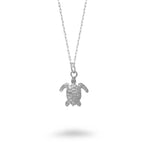 Detailed Turtle 925 Sterling Silver paired with an 18" chain. The turtle symbolically teaches us about walking our path in peace and looking within ourselves for more grounded, long-lasting, decision making.