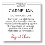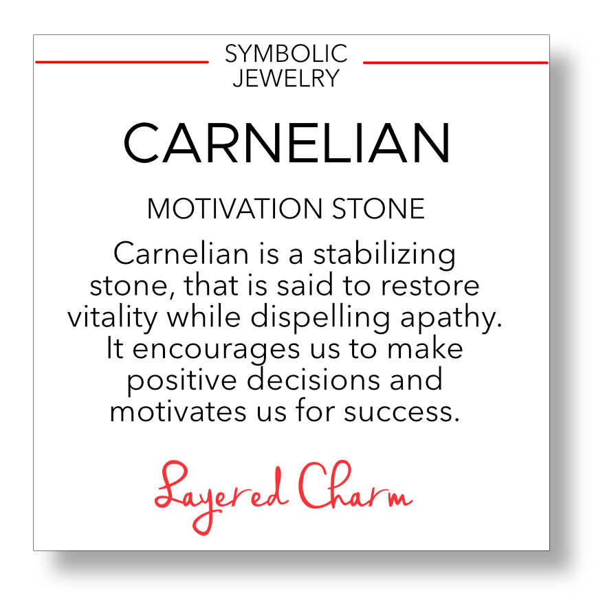 Carnelian is a stabilizing stone, that is said to restore vitality while dispelling apathy. It encourages us to make positive decisions and motivates us for success.