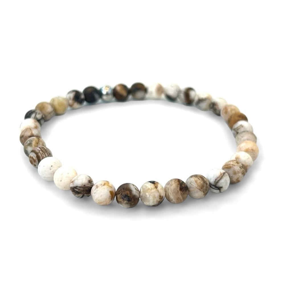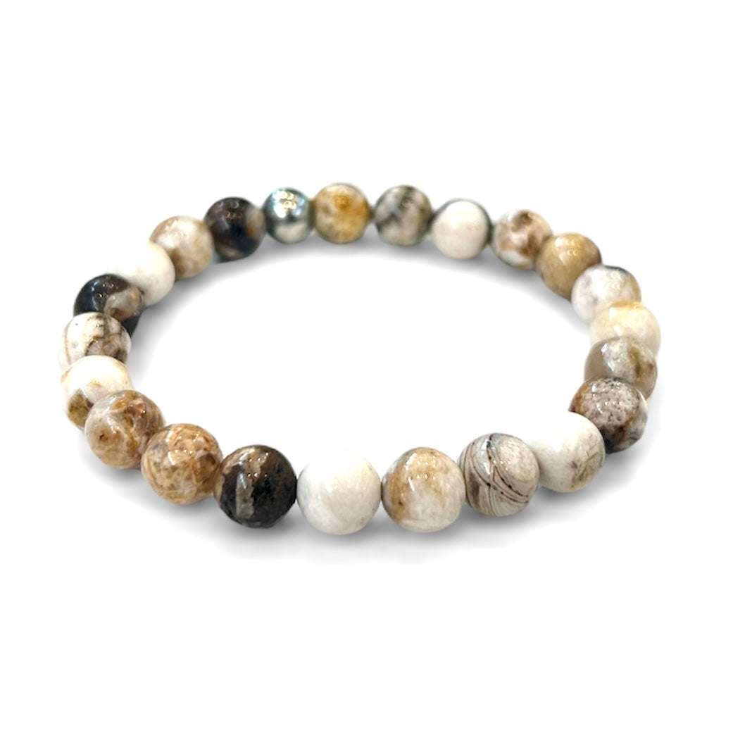 Wood Jasper is a captivating stone that ranges in color from milky white to golden brown, often featuring striking patterns reminiscent of birch bark or wood grain. Known as an elemental earth stone, Jasper is aligned with the planet's electromagnetic energies. Multi-colored Jasper is thought to inherit the properties of its dominant color, while also drawing strength from its less prominent hues. This unique stone originates from Tanzania.
