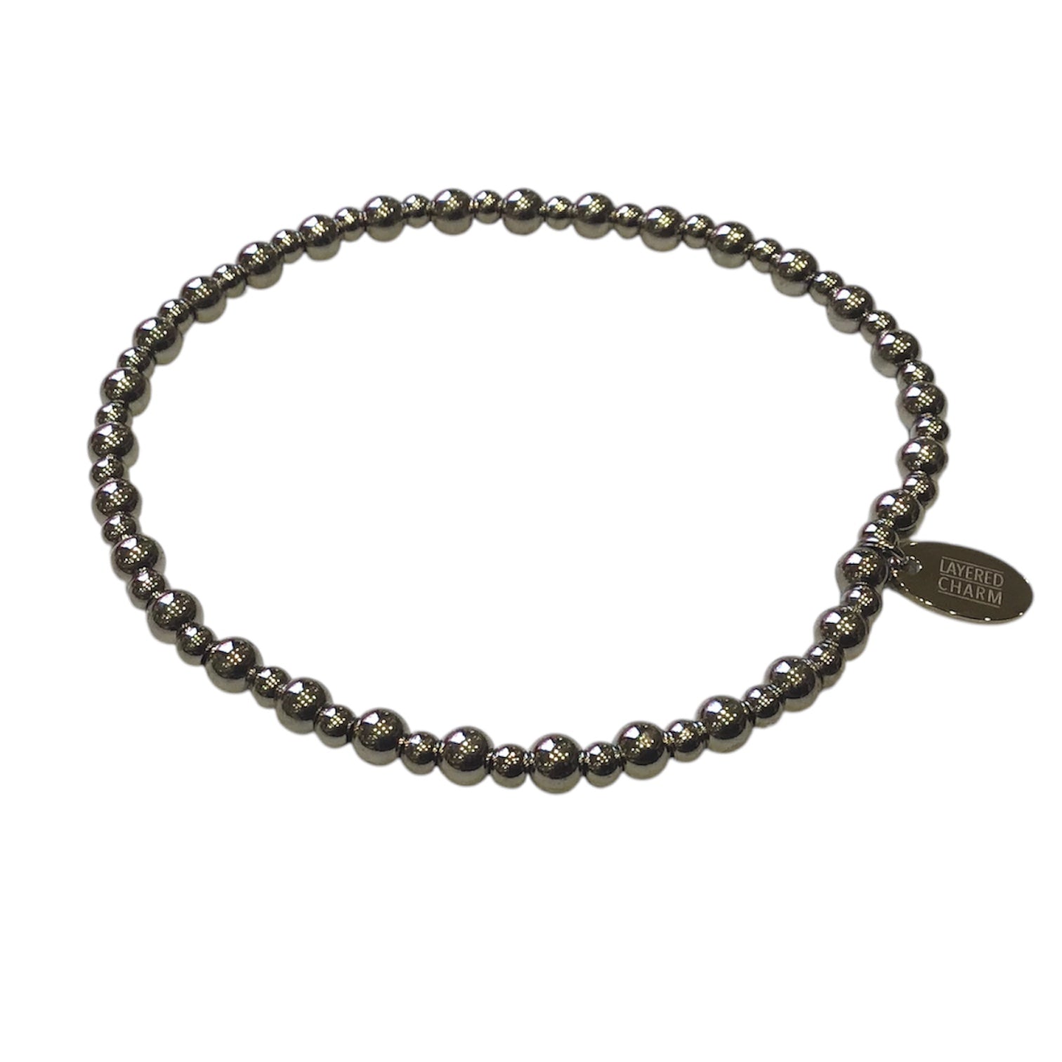 Premium Stainless Steel High-Polished Bead Stretch Bracelet – Layered Charm Collection