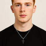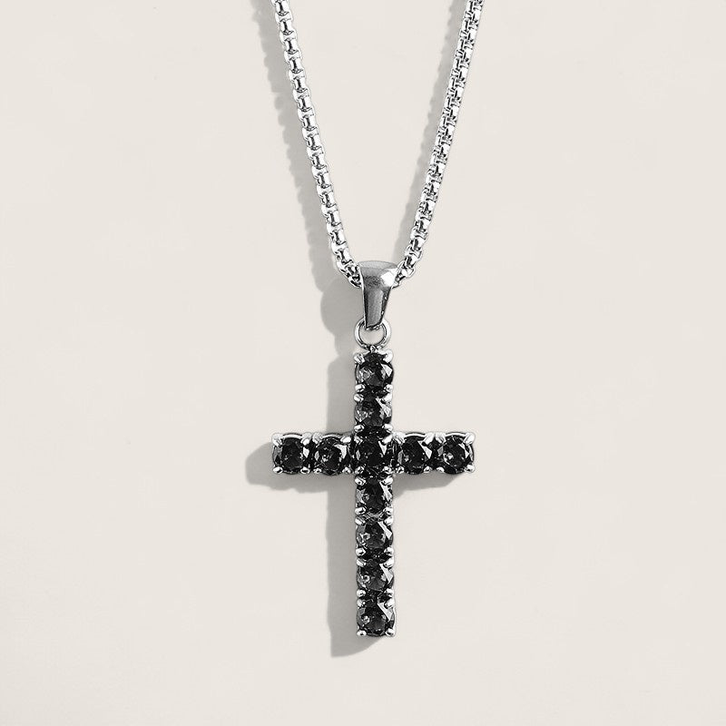 A symbol of strength and elegance, the Noir Grace Necklace blends timeless faith with modern sophistication. The cross pendant is adorned with hand-set black cubic zirconia stones that shimmer subtly against polished stainless steel— a striking reflection of inner balance and quiet confidence.